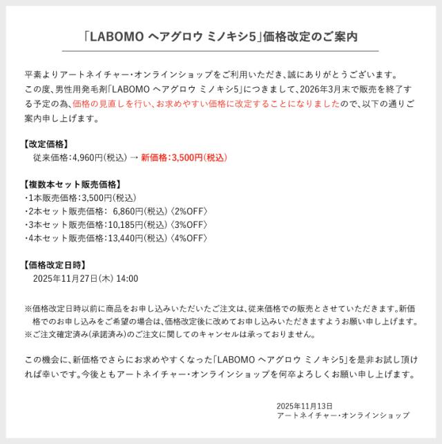 | <第1類医薬品お申込みの際のご注意> 1回のご注文で本商品のお申込み可能な数量は4本までとさせていただきます。 上記以上の本数をお申込みの場合、店舗側でキャンセルさせていただきます。 『LABOMO(ラボモ) ヘアグロウ ミノキシ5』と『LABOMO(ラボモ) ヘアグロウ ハナミノキ』は1回のご注文で同時にお申込みはできません。別々にお申込みください。同時にお申込みの場合、店舗側でキャンセルさせていただきます。 |