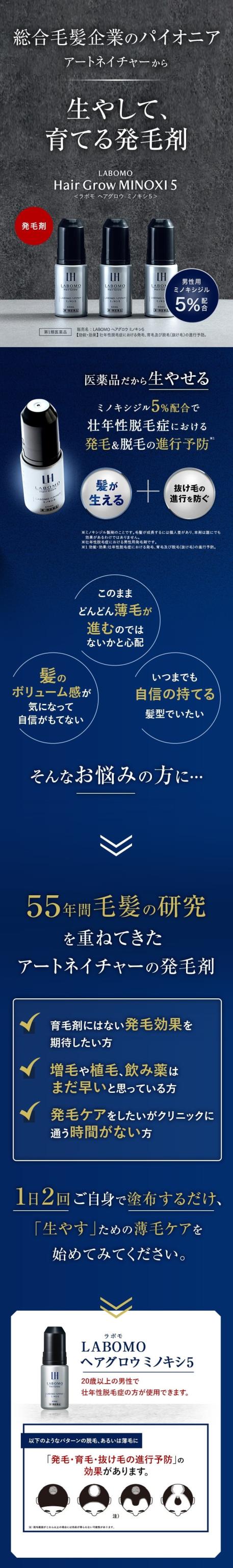 【第1類医薬品】アートネイチャー ラボモ ヘアグロウ ミノキシ5 60mL 4本 発毛剤 ミノキシジル5% 育毛剤 男性用 ミノキ 発毛 育毛 男性 発毛促進 抜け毛予防 薄毛対策 脱毛症 メンズ 薄毛 脱毛 頭皮 aga LABOMO 公式