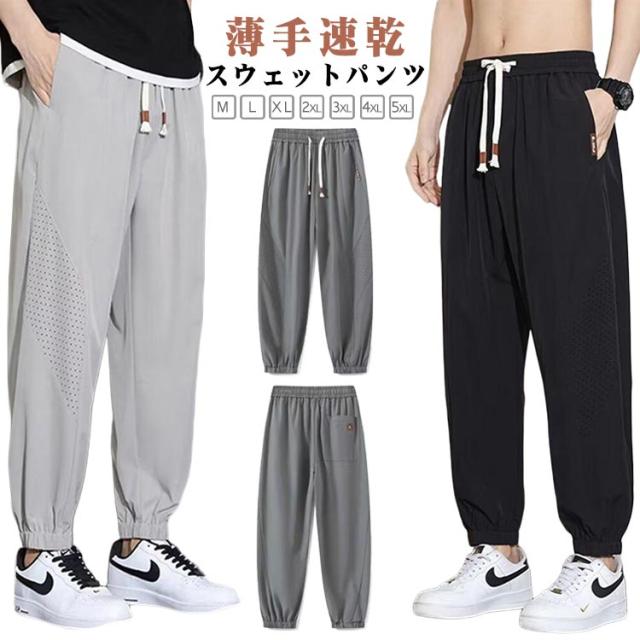 メンズ ジョガーパンツ ワイドパンツ イージーパンツ 夏 アイスシルク カジュアル ジョガーパンツ スポーツ 涼しい スウェットパンツ 薄手速乾 おしゃれ