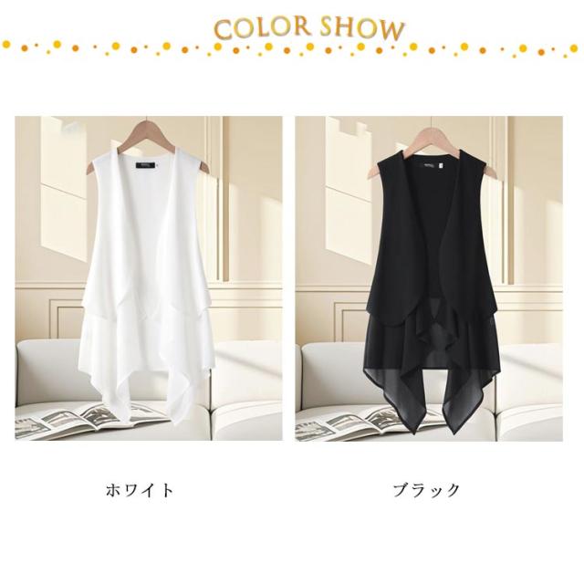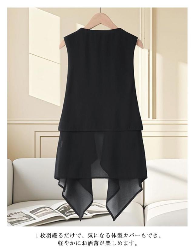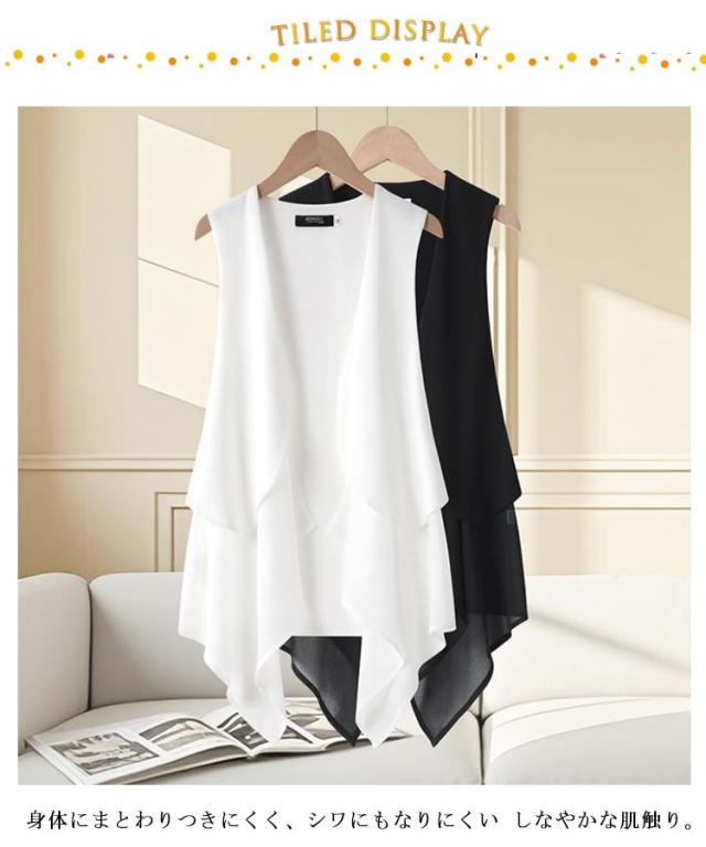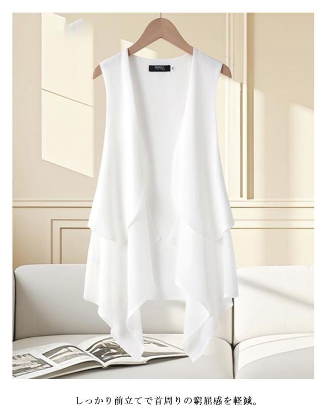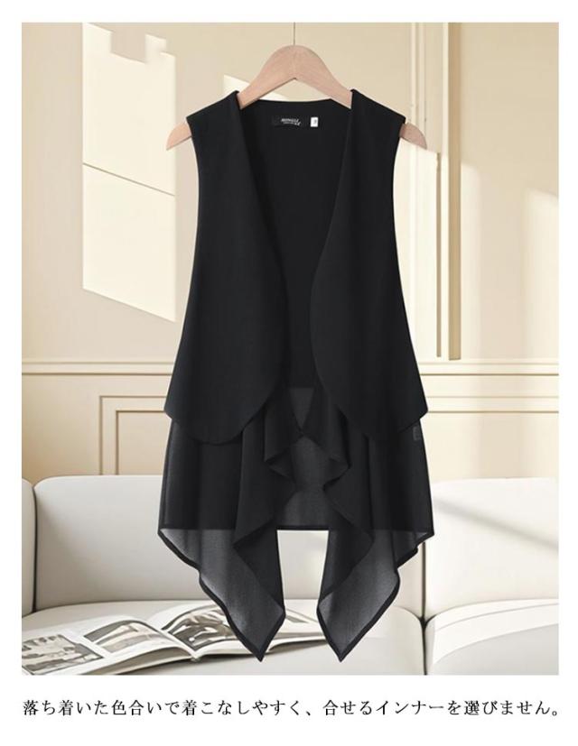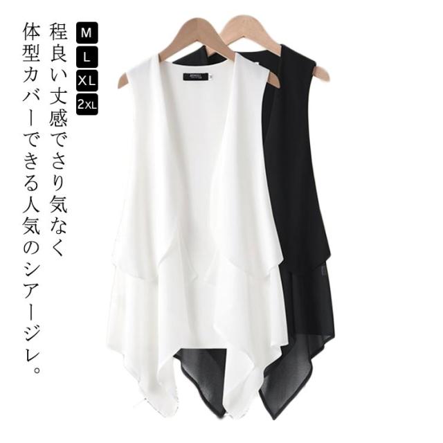 トップス 透け ジレ 涼しい ロング丈 コーデ シアー ベスト カーディガン 袖無し アウター 体型カバー 体型カバー 大人 無地 ロングジレ ドレープ 羽織 ストレッチ お出かけ 美ドレープ 休日 通勤着 オン オフ