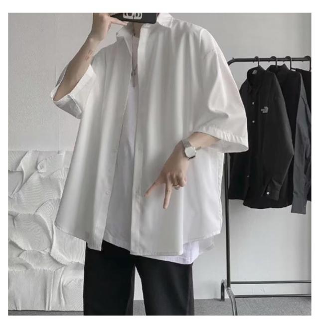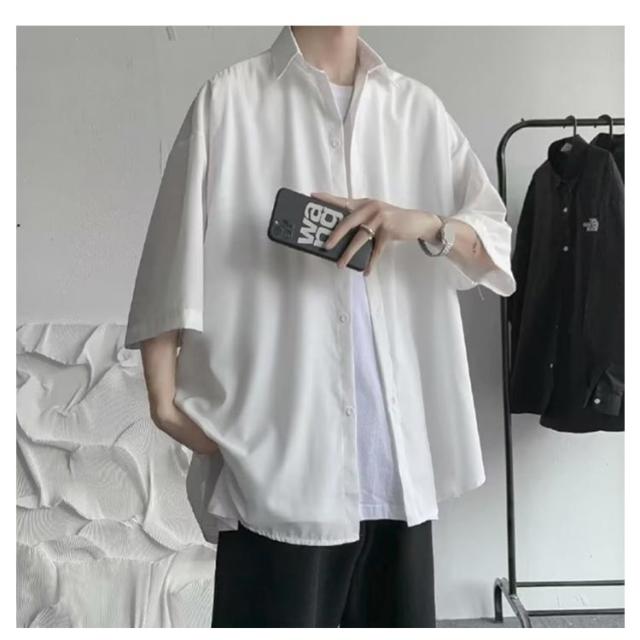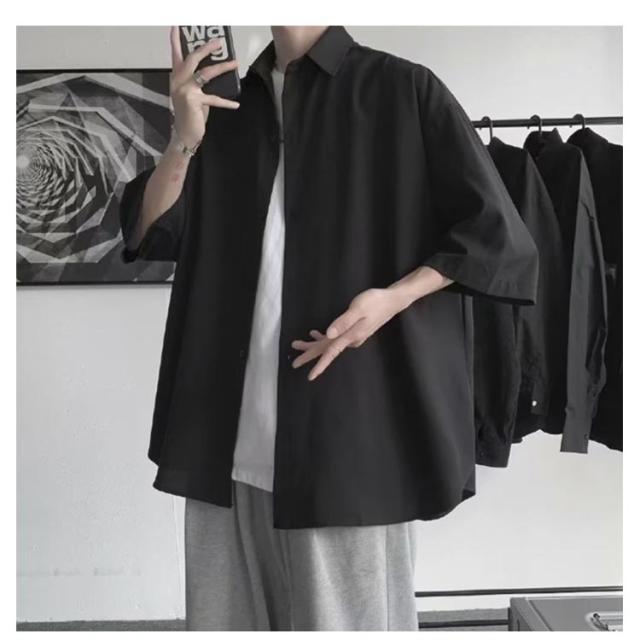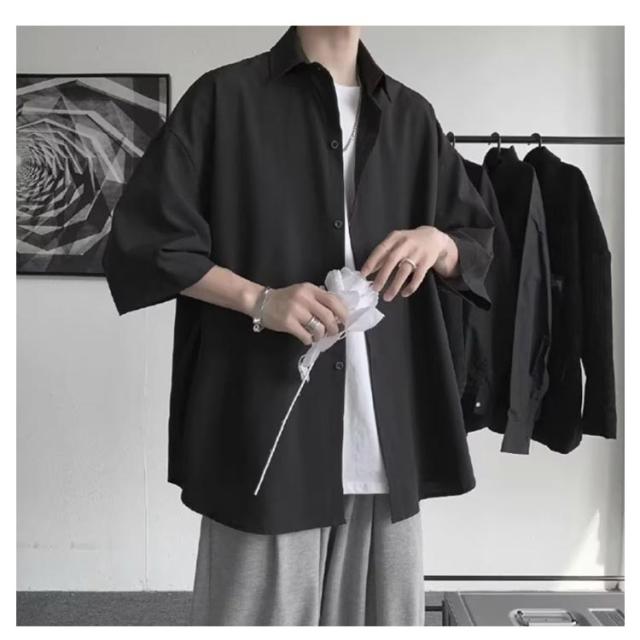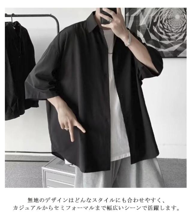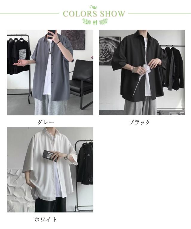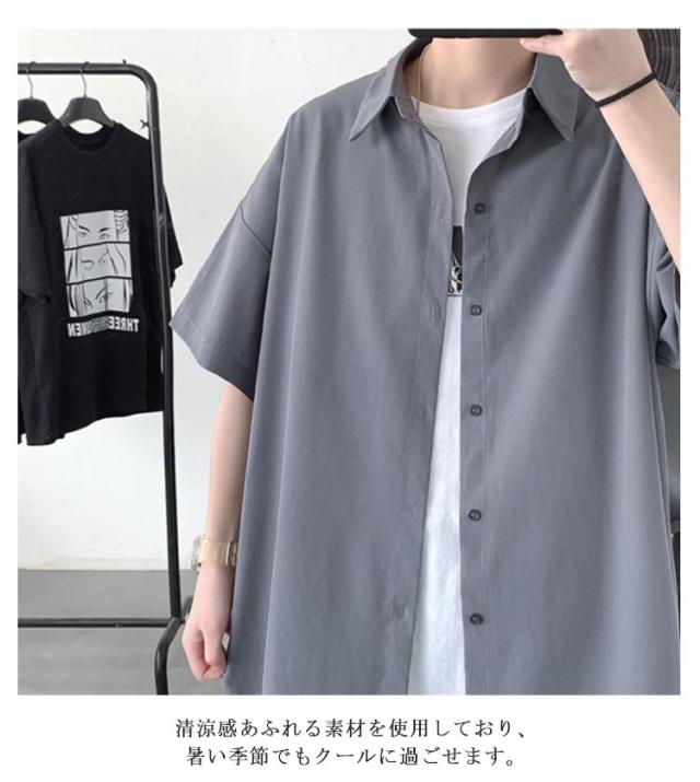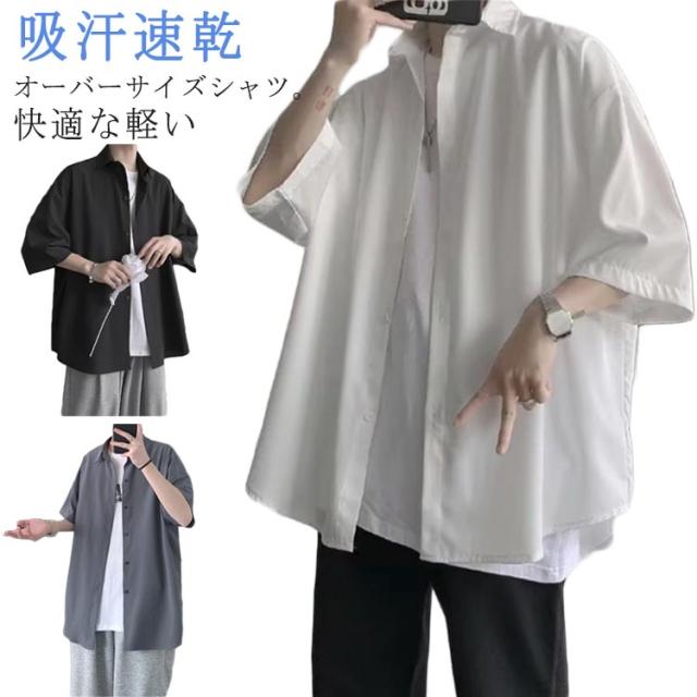 半袖シャツ ゆるシャツ ゆったり カジュアルシャツ 五分袖シャツ 半袖シャツ クール感 シャツ 大きいサイズ ビッグシルエット サマーシャツ メンズ 凉しい 接触冷感 羽織り アウター 韓国ファッション UVカット シャツジャケット 夏物 冷房対策 部屋着 無地