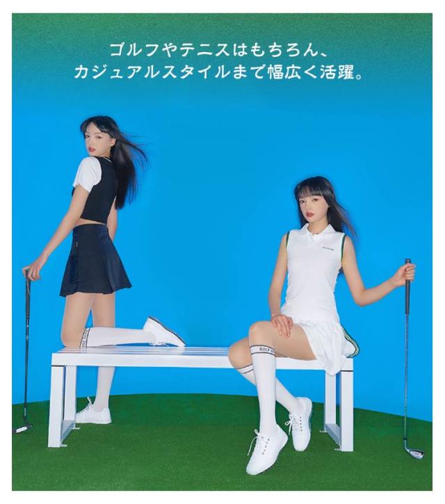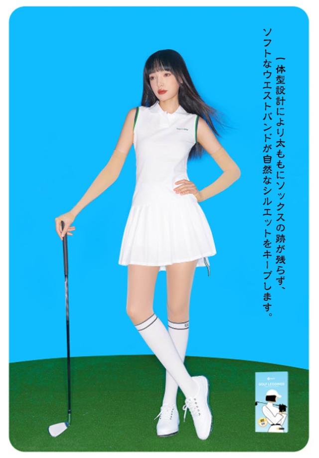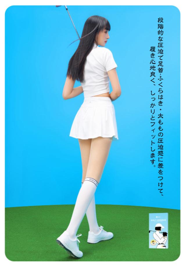 | 1枚でペチパンツ + ストッキング + ニーソックスの3役をこなすゴルフストッキング。 フェイクニーハイなら段差の無い憧れの魅せ脚に♪ 吸汗速乾で汗をかいても蒸れにくくて快適にラウンドできます。 薄手ながら透けにくく、通気性に優れ汗を素早く逃がすため、ゴルフなど長時間のアウトドアスポーツでも快適。 肌に優しい高伸縮素材採用で、ゴルフやテニスなどの激しい動きにも対応できます。 一体型設計により太ももにソックスの跡が残らず、ソフトなウエストバンドが自然なシルエットをキープします。 段階的な圧迫で足首?ふくらはき・太ももの圧迫感に差をつけて、履き心地良く、しっかりとフィットします。 ゴルフやテニスはもちろん、カジュアルスタイルまで幅広く活躍。 | |
