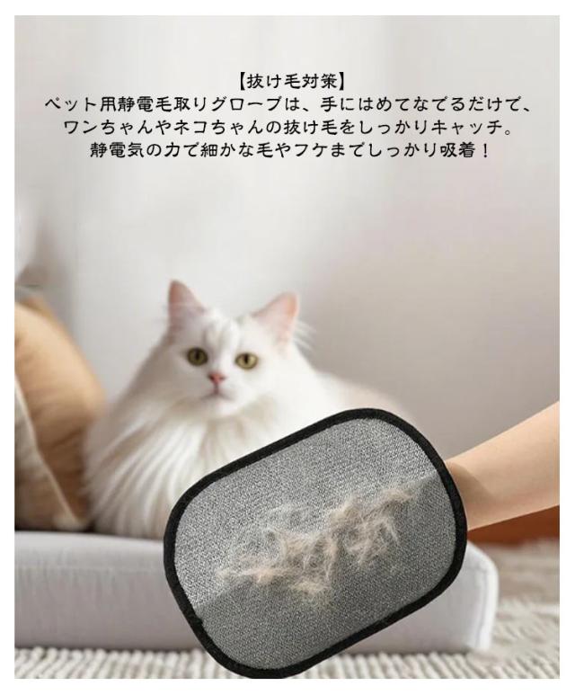 静電気防止 ペット用 2個セット 静電気除去手袋 ペット用毛取りグローブ 猫の毛取り手袋 犬用 抜け毛取り グルーミンググローブ 毛取り手袋 猫の毛取り 再利用可能 洗える 短毛・中毛・長毛