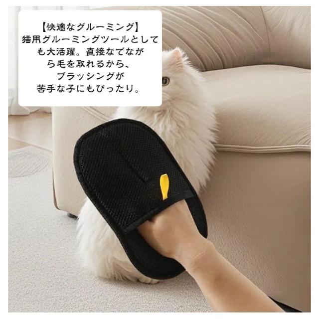 | 【抜け毛対策】ペット用静電毛取りグローブは、手にはめてなでるだけで、ワンちゃんやネコちゃんの抜け毛をしっかりキャッチ。静電気の力で細かな毛やフケまでしっかり吸着! 【お洋服もお布団もふわふわきれい】ポリエステル製の手袋は、洋服やソファ、ベッドなどにくっついた毛もササッとお掃除。毎日の毛対策もこれ一つでOK 【快適なグルーミング】猫用グルーミングツールとしても大活躍。直接なでながら毛を取れるから、ブラッシングが苦手な子にもぴったり。 【軽くてコンパクト、お出かけにも】バッグにポンッと入れておけるサイズ感。旅行やお散歩先でもサッと使えて便利! 【洗えて何度でも使えるエコ仕様】洗濯お手入れ簡単で、繰り返し使えるからとっても経済的。毎日使ってもへたれにくく、毛取り生活がもっと楽しくなっちゃう | |