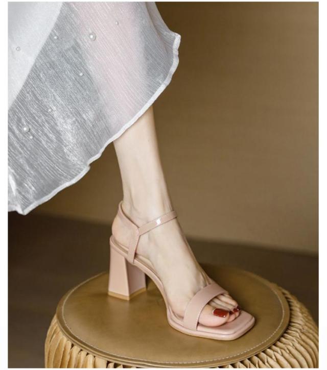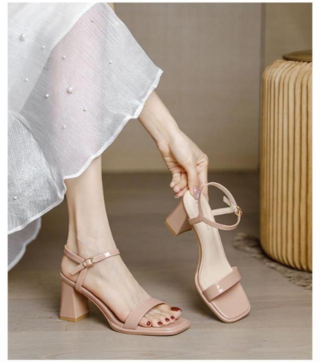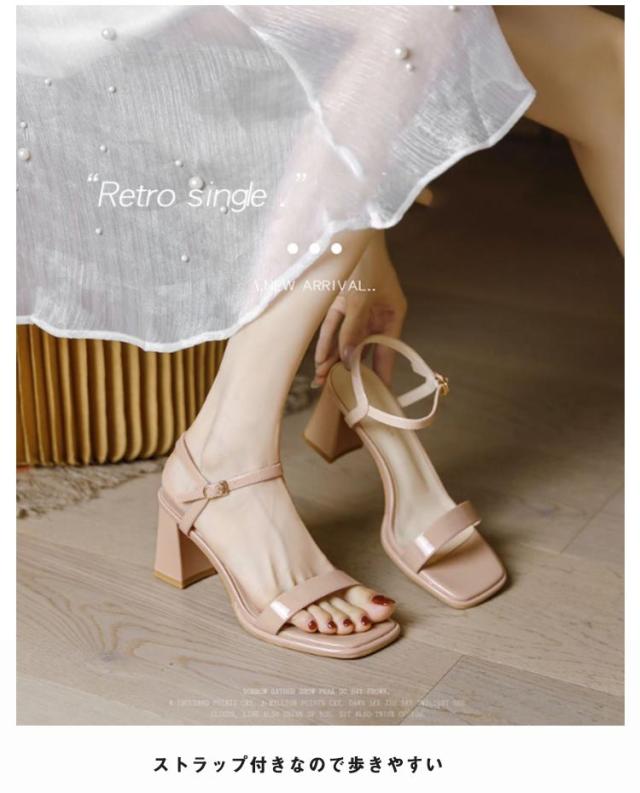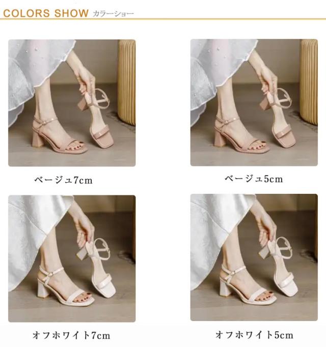 レディース ストラップサンダル スクエアトゥ 選べる高さ 7cm 5cm 太ヒール チャンキーヒール アンクルストラップ 痛くない 脱げない 歩きやすい きれいめ