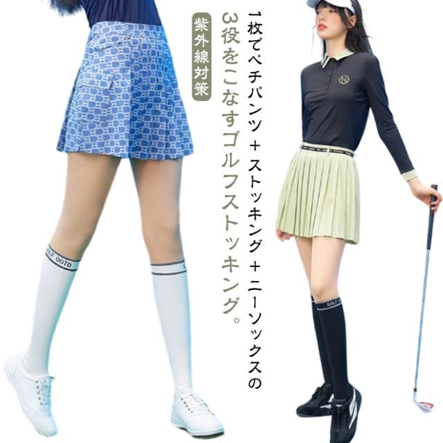 日焼け防止 UVカット スパッツ ゴルフウェア ストッキング オールインワン フェイクニーハイ 着圧 ストレッチ性 吸汗速乾 伝線しにくい フェイクオーバーニー 紫外線対策 日焼け対策 オールインワン レディース スポーツ