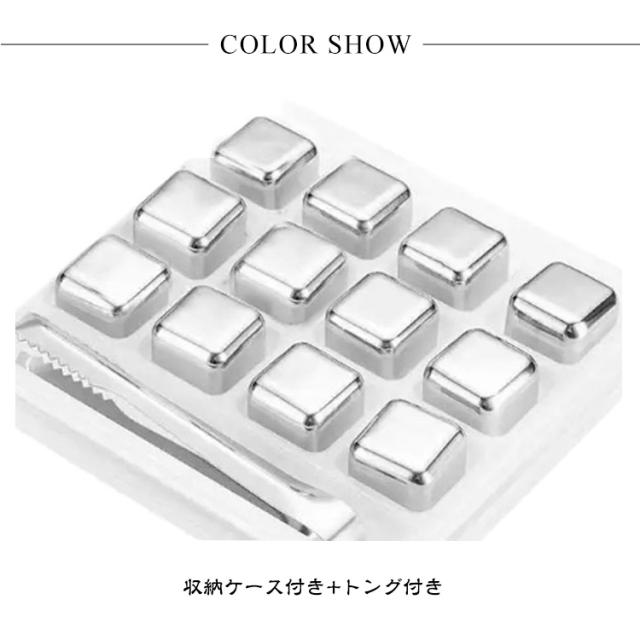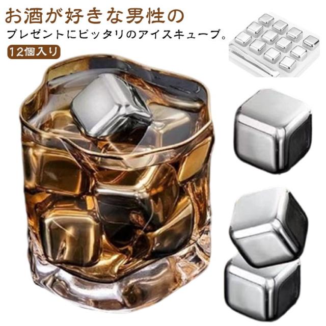 急速冷却 トング付き 溶けない氷 ステンレス氷 角氷 12個入り アイスキューブ 繰り返し使用 ステンレス ステンレスキューブ ウイスキー こおり 冷蔵庫 飲み物 ビール 酒用品 結婚祝い 誕生日 プレゼント