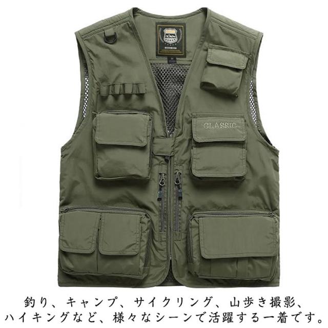 多機能 メンズ お釣りベスト ミリタリーベスト 前開き 山歩き スポーツ ポケットベスト カジュアルベスト 手ぶらベスト 夏ベスト 軽量 通気 速乾 フィッシングベスト お釣り カジュアルベスト お釣り 撮影 登山服 ワーク 多ポケット ミリタリー