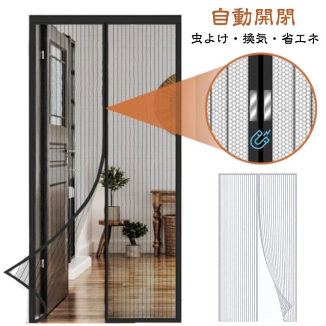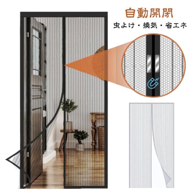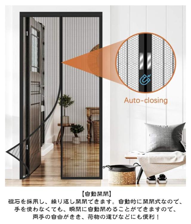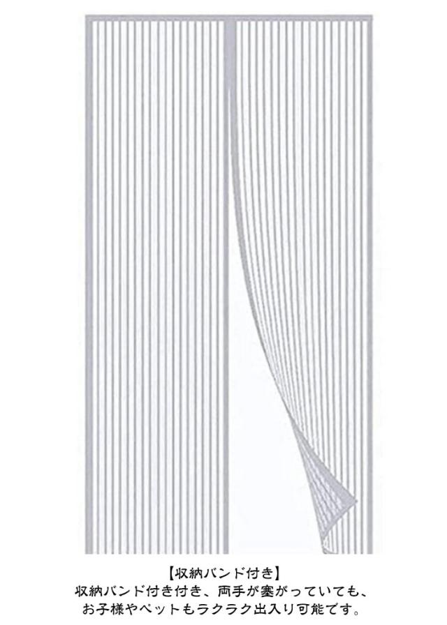 マグネット式 後付け 入り口 自動開閉式 網戸カーテン 勝手口 収納バンド付き 玄関網戸 マジックテープ付き 簡易網戸 簡単取り付け ドア用 玄関 換気対策 ベランダ 虫除け 蚊取り対策 玄関網戸 通気性