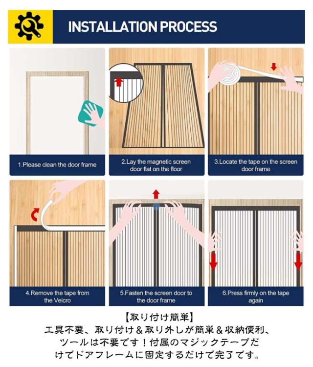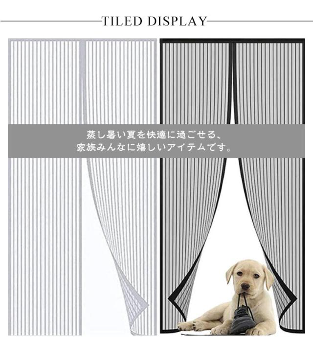 | 蒸し暑い夏を快適に過ごせる、家族みんなに嬉しいアイテムです。 【自動開閉】磁石を採用し、繰り返し開閉できます。自動的に開閉式なので、手を使わなくても、瞬間に自動閉めることができますので、両手の自由がきき、荷物の運びなどにも便利! 【虫よけ・換気・省エネ】風を通して虫を防ぐ!超細密網目で、昆虫、ハエ、虫などを外にシャットアウトできると同時に新鮮な空気と日差しを遮断しないです。 【取り付け簡単】工具不要、取り付け&取り外しが簡単&収納便利、ツールは不要です!付属のマジックテープだけでドアフレームに固定するだけで完了です。 【収納便利】使わない季節には取り外し、折りたたんでコンパクトに収納できます、女性の方でも簡単に操作できます。 【収納バンド付き】収納バンド付き付き、両手が塞がっていても、お子様やペットもラクラク出入り可能です。 | |