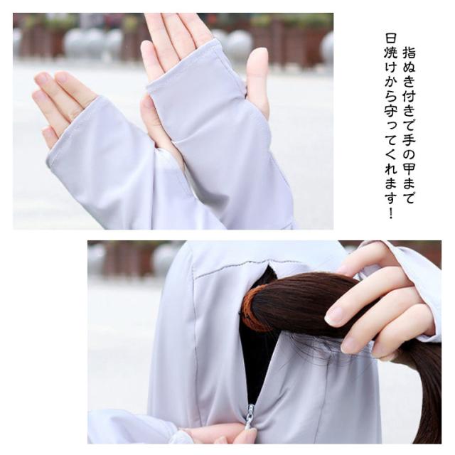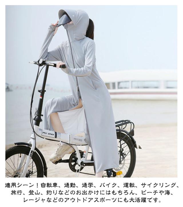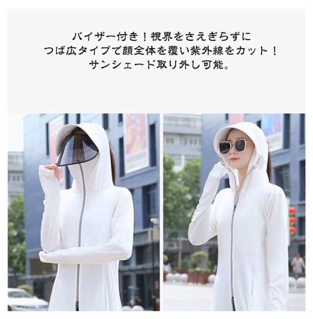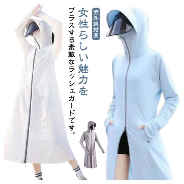 紫外線対策 ラッシュガード ロング丈 レディース パーカー ラッシュガード 水着 日焼け止め 全身カバー ダブルジップ 自転車 接触冷感 UVカット 長袖 サンバイザー付き 冷房対策 体型カバー 軽量 吸汗速乾 ストレッチ性