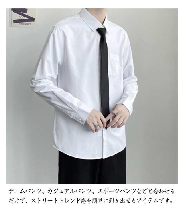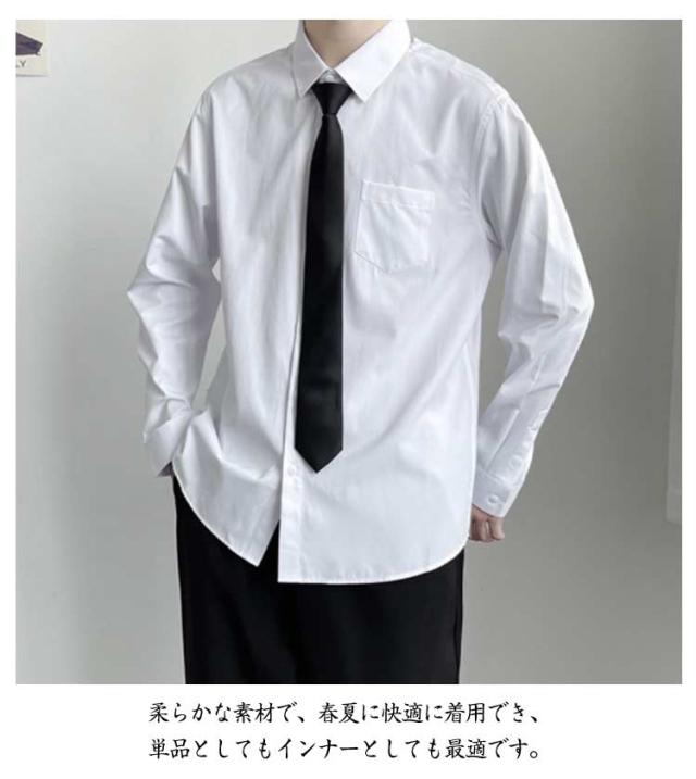 長袖シャツ 【ネクタイ付き】ワイシャツ スクールシャツ シャツ メンズ ブラック 中学生 ブルー 夏 高校生 トップス 春 カジュアルシャツ 学生服 無地 長袖 白シャツ ゆったり ブラウス 通学 通勤 黒 【ネクタイ付き】ワイシャツ ホワイト
