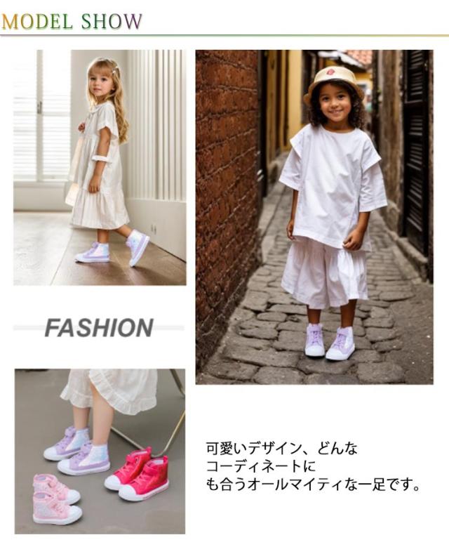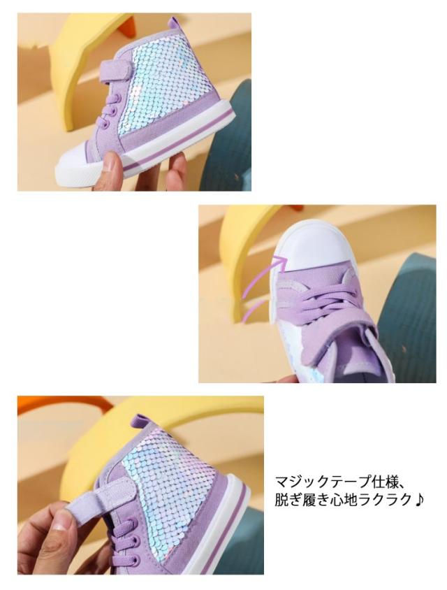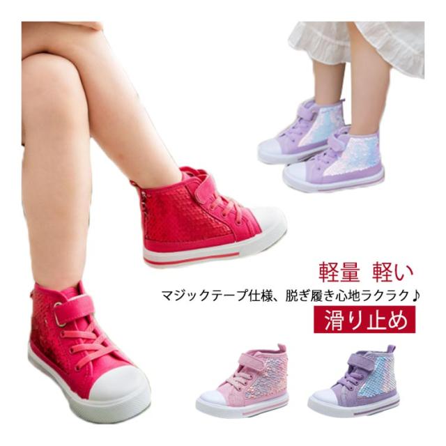 キッズ ハイカット スパンコール キラキラ 滑り止め 女の子 ハイカットスニーカー 子供靴 キッズ 軽い かわいい スニーカー 歩きやすい マジックテープ 軽量 シューズ 舞台衣装 カジュアル 疲れない ハイカット 通学 可愛い 靴