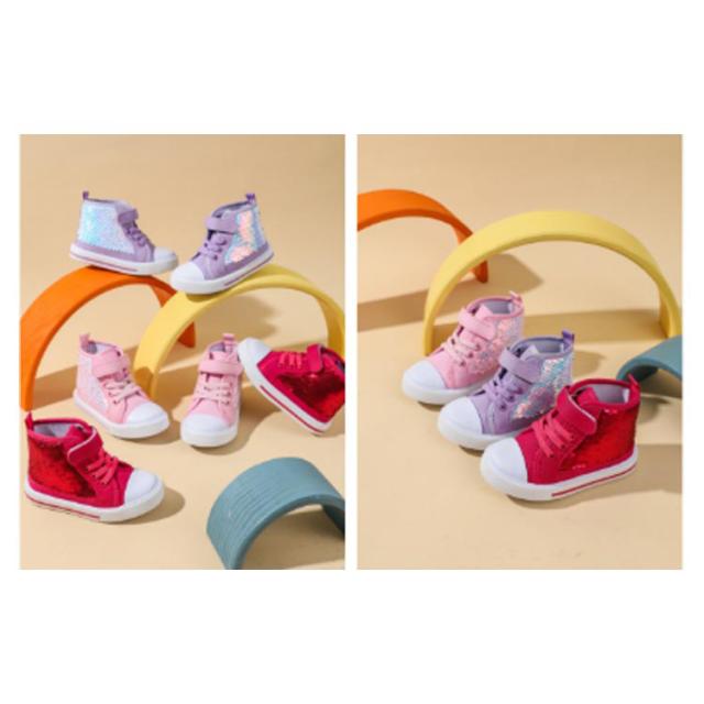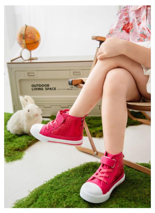 | 足元を彩るサイドのスパンコールがキュートなハイカットシューズ マジックテープ仕様、脱ぎ履き心地ラクラク♪ アウトソールには滑り止め加工を施しています。 可愛いデザイン、どんなコーディネートにも合うオールマイティな一足です。 | |
