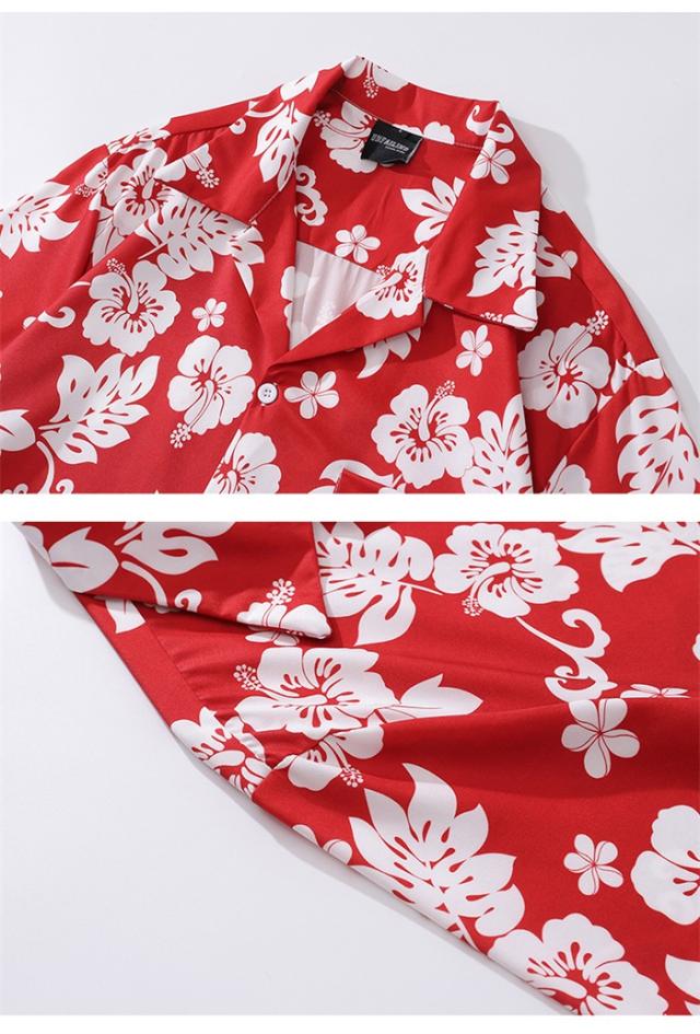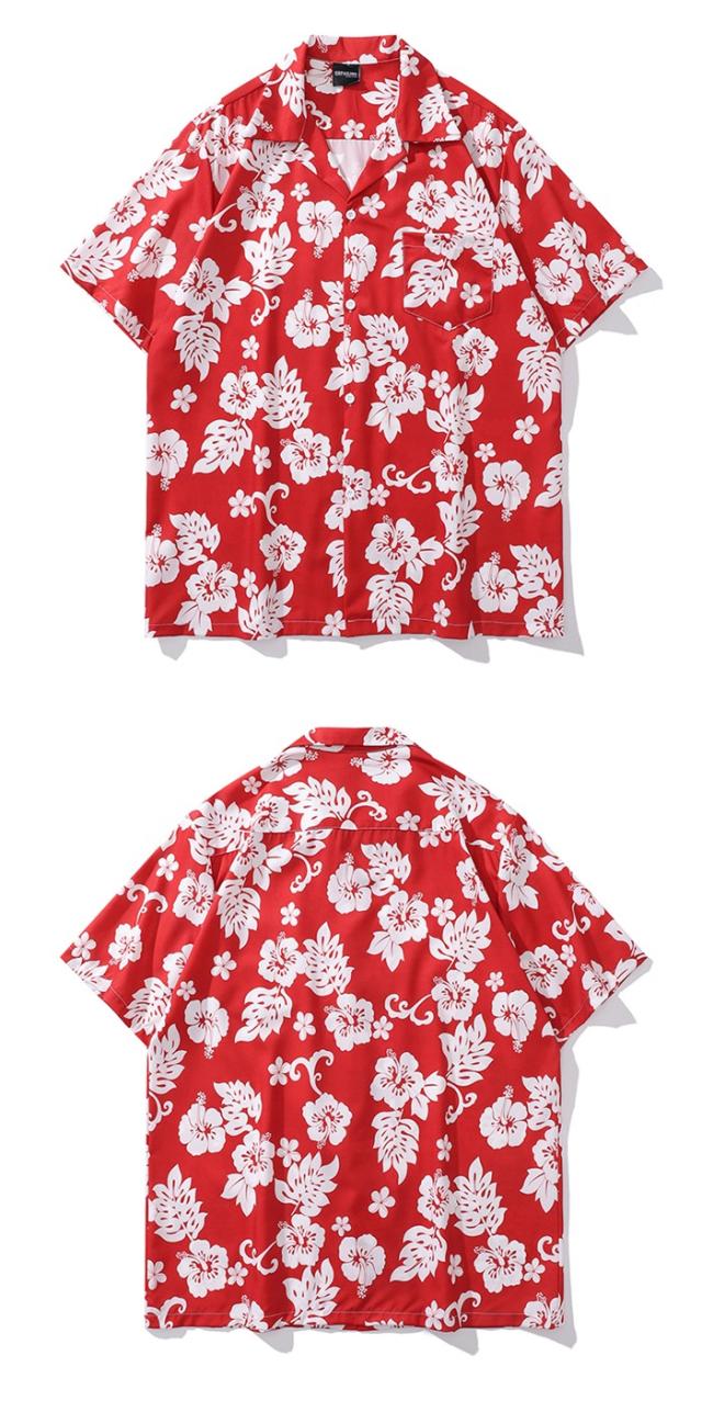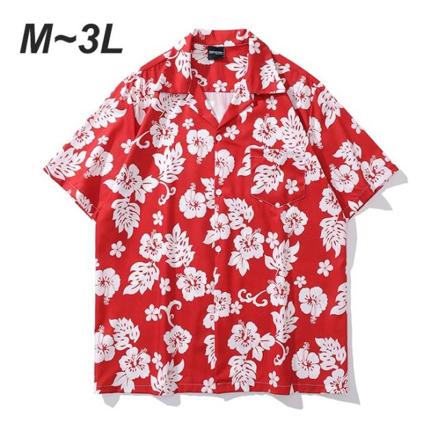 アロハシャツ ハイビスカス 総柄 赤 男女兼用 メンズ レディース カジュアル 半袖 柄シャツ 夏 海 開襟シャツ レッド ゆったり 涼しい おしゃれ 大きいサイズ ハワイアン 半袖シャツ 夏 夏服 ビーチ 海 涼しい 冷感旅行 リゾート 沖縄 レッド M-2XL