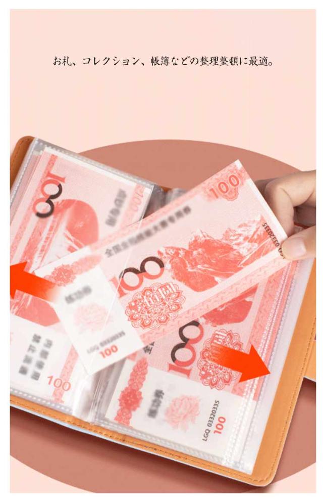 | 【貯金ファイル】 【100枚収納可能】 透明なページだから中身がわかりやすい。 お札、コレクション、帳簿などの整理整頓に最適。 マグネット式の留め具で開閉しやすい。 表面は防水や汚れに強いPUレザーなので軽度の汚れは簡単に拭きとれます。 | |