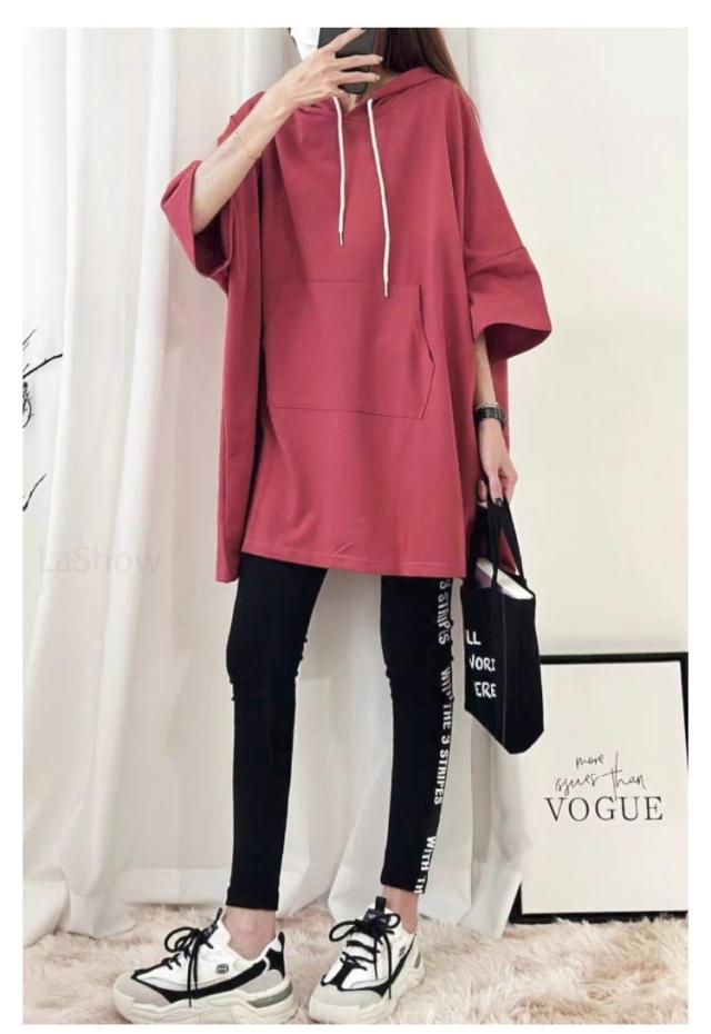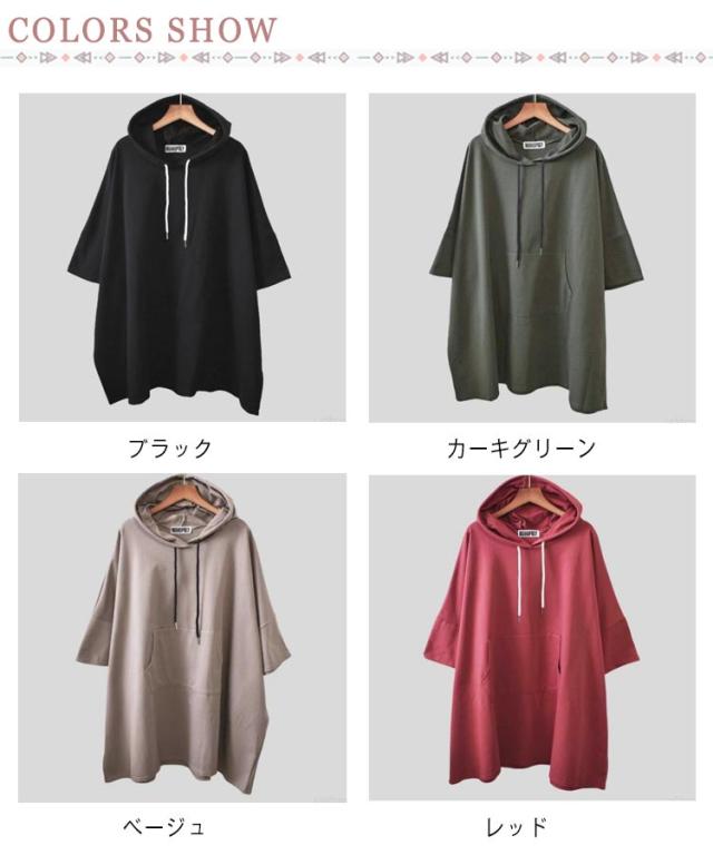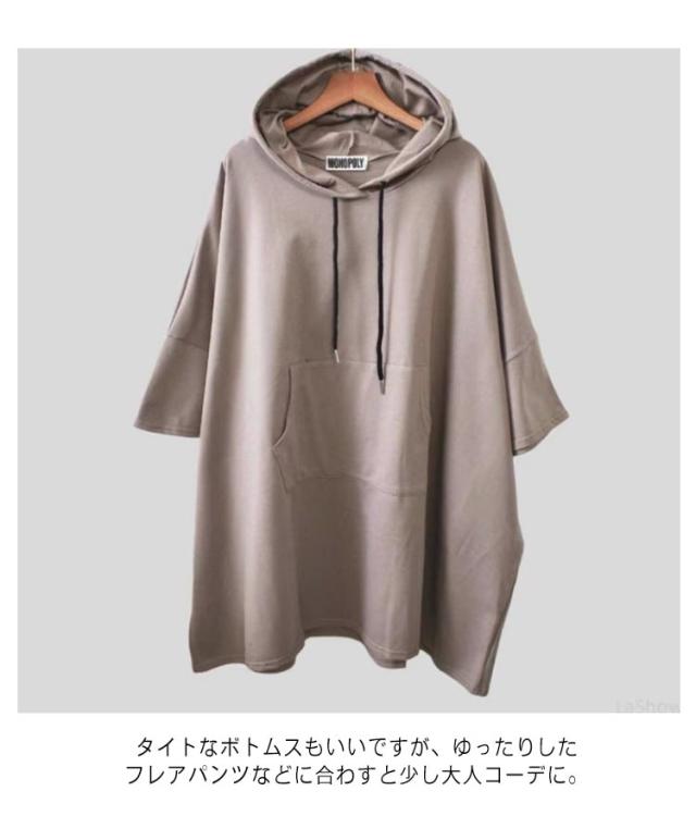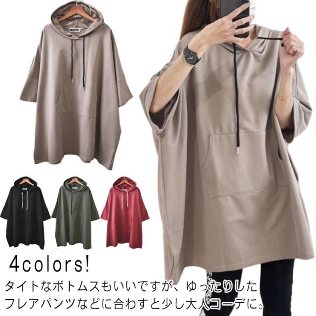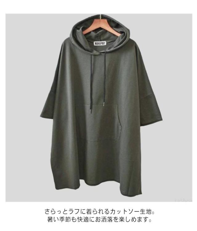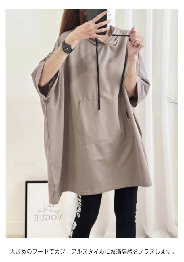カットソー トップス ティーシャツ ゆるパーカー Tシャツ レディース チュニック 春夏 ドルマンスリーブ 二の腕カバー Tシャツ 無地 ビッグ 半袖 フード プルオーバー 大きいサイズ 長い ゆったり Tシャツ ロング