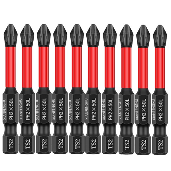 XIANFENGHU 磁気ドライバービット耐衝撃 滑り止め インパクトドライバービットセット 精密ドライバー 六角? 電動ドライバー ビット工具 (50mm-10本)