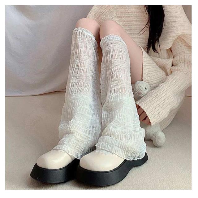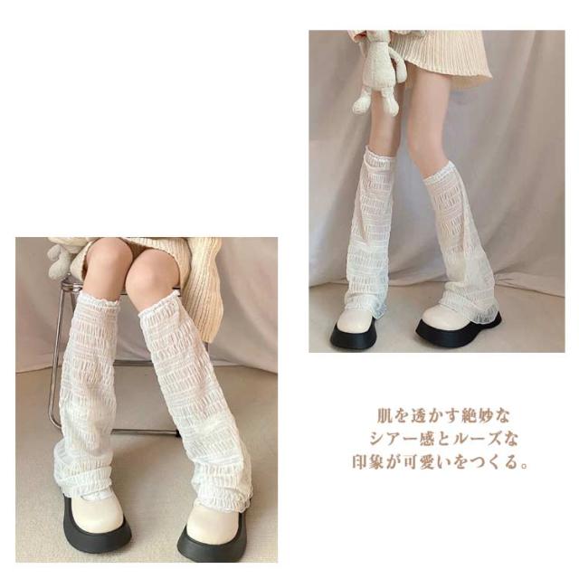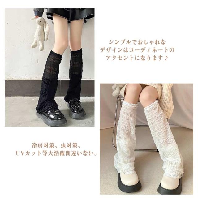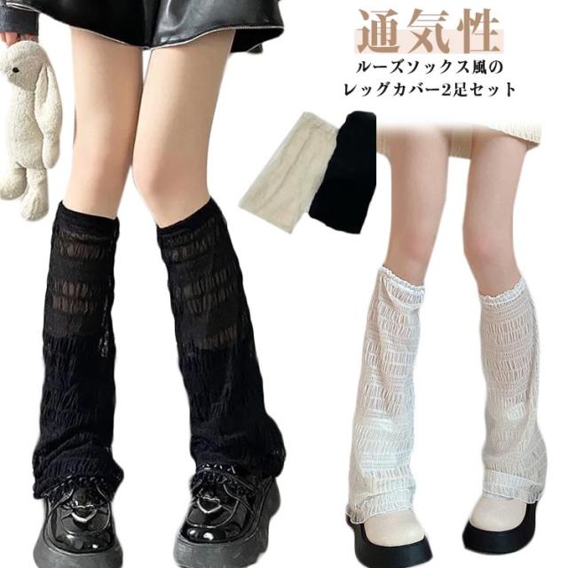 可愛い UV レディース 2足セット クール レッグウォーマー ロング ゆったり 薄手 レース アームカバー ルーズソックス 両足用 夏 体型カバー かわいい 透け感 通気性 日焼け防止 レッグカバー 着?せ ガール ギャル 学生 JK