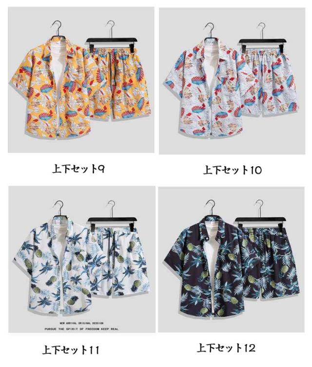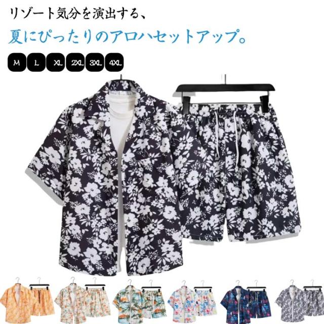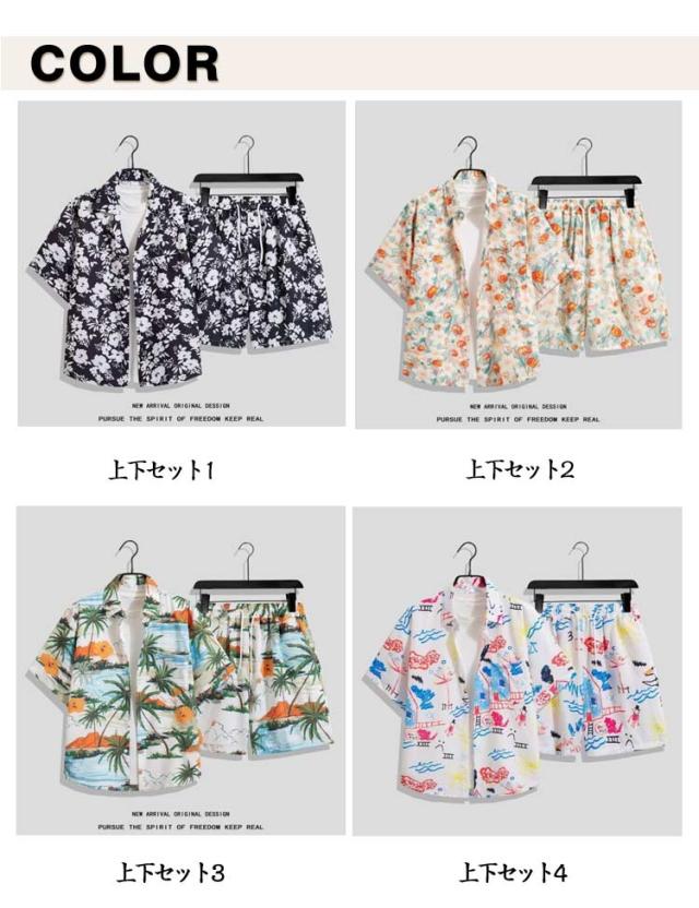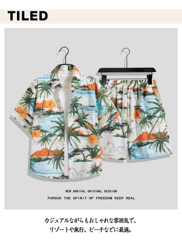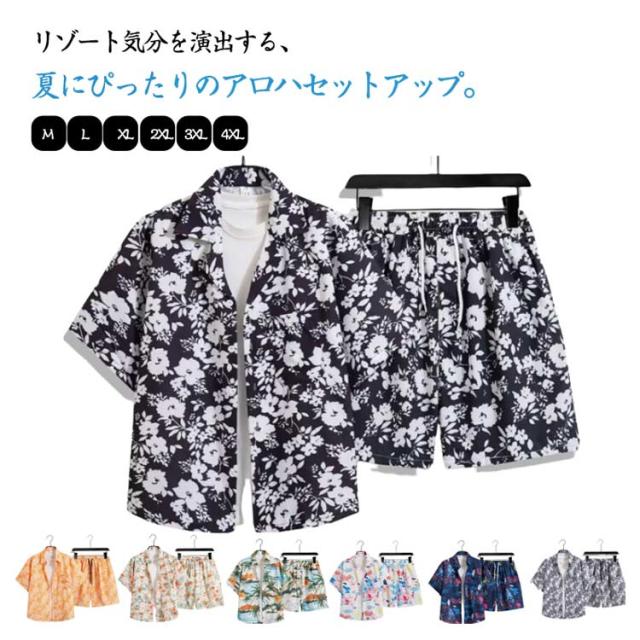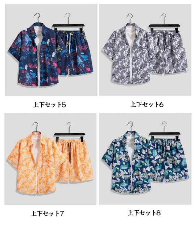 上下セット メンズ アロハシャツ レディース 半袖シャツ+ショートパンツ セットアップ 総柄 カジュアルウェア ルームウェア おしやれ カップル 大きいサイズ 旅行 リゾート ビーチ レジャー