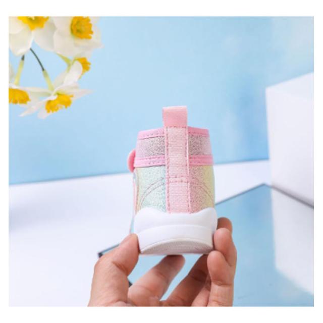 | 足元を彩る♪女の子ハイカットシューズ マジックテープ仕様、脱ぎ履き心地ラクラク♪ アウトソールには滑り止め加工を施しています。 可愛いデザイン、どんなコーディネートにも合うオールマイティな一足です。 | |