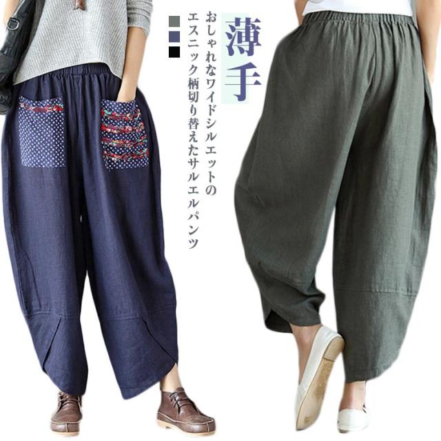 バルーンパンツ コクーンパンツ 夏 民族風 ウエストゴム 綿混 パンツ レディース ガウチョパンツ 大人 女性 秋 ワイドパンツ バルーンパンツ 春 パンツ ボトムス ゆったり ファッション 大きいサイズ 夏 薄手 涼しい 通勤 切り替え