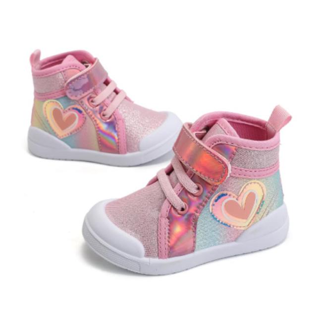可愛い スニーカー ハート カジュアル 滑り止め 女の子 キッズ マジックテープ ハイカットスニーカー 運動靴 歩きやすい 軽量 軽い かわいい 通学 疲れない シューズ スニーカー 靴 痛くない 誕生日 ギフト プレゼント 通園 通学