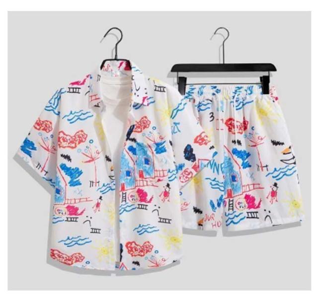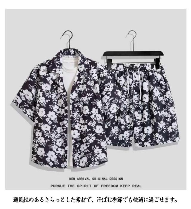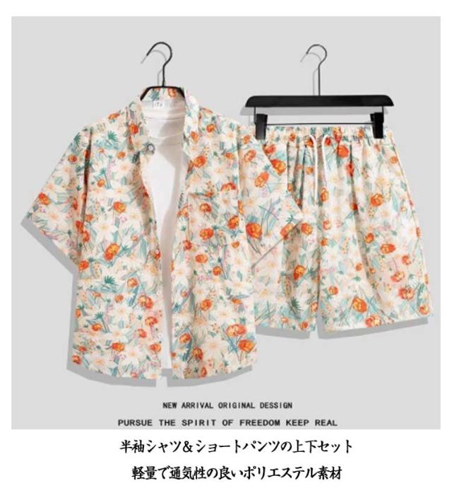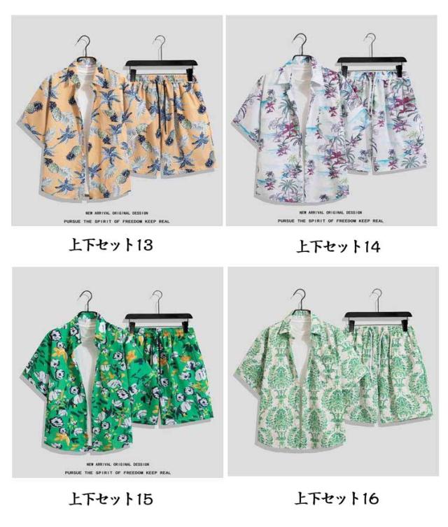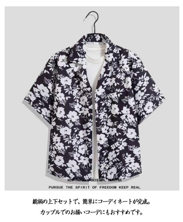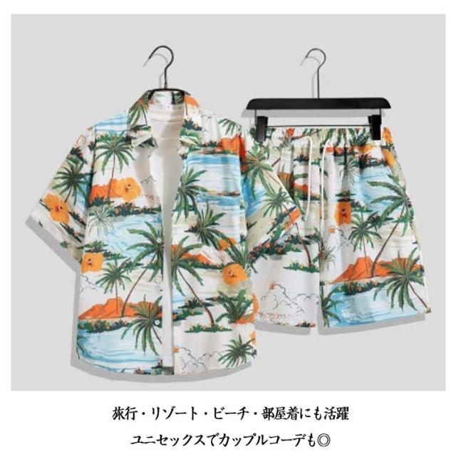 上下セット メンズ レディース 半袖シャツ+ショートパンツ 大きいサイズ アロハシャツ セットアップ カジュアルウェア ルームウェア おしやれ アロハシャツ カップル 旅行 リゾート ビーチ レジャー