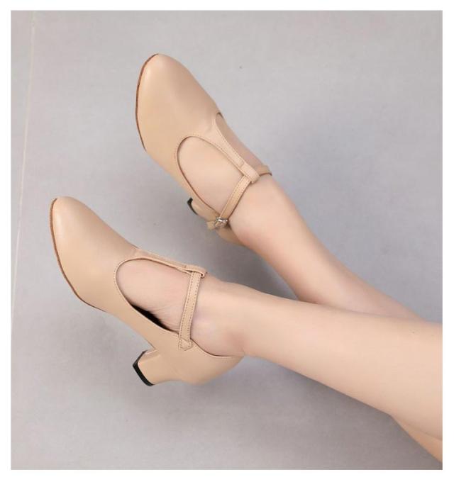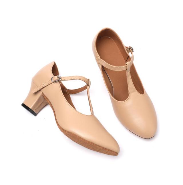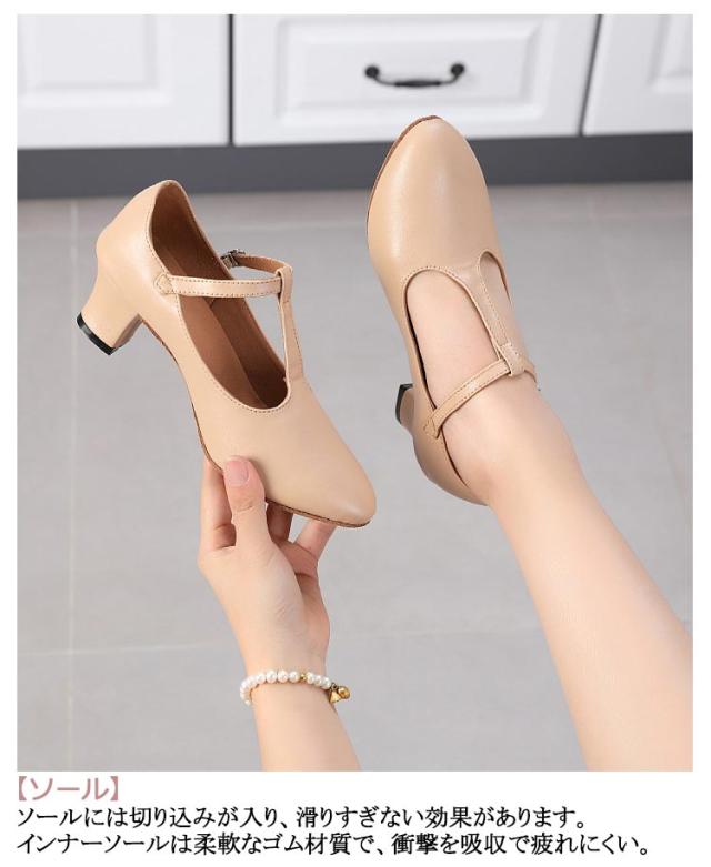 ジャズダンス シューズ キャラクターシューズ シューズ 本革 ジャズ ベージュ 初心者 Tストラップレディース ダンスシューズ ステージ テーマパーク ヒール フォークダンス