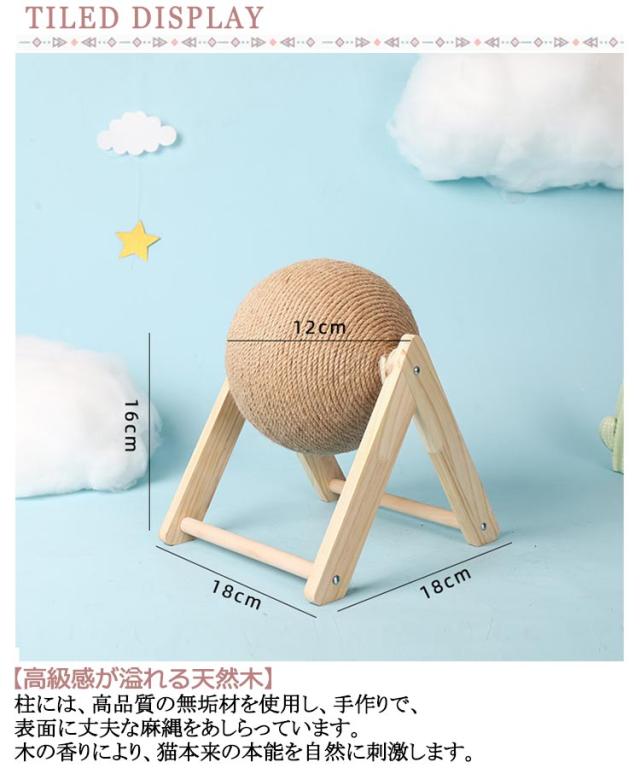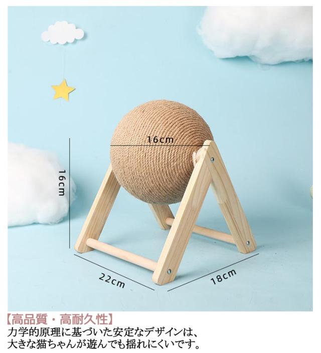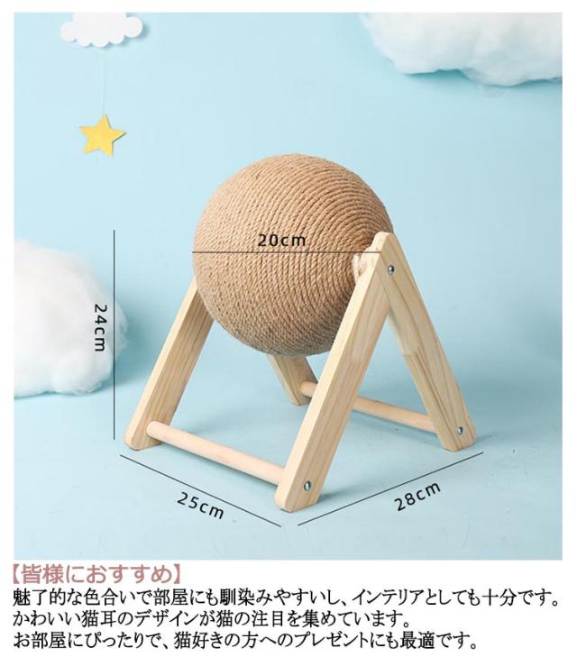 | 2タイプ×3サイズ!猫のボール型おもちゃ・爪研ぎ!インテリアとしてもかわいい! 【高級感が溢れる天然木】柱には、高品質の無垢材を使用し、手作りで、表面に丈夫な麻縄をあしらっています。木の香りにより、猫本来の本能を自然に刺激します。 【高品質・高耐久性】力学的原理に基づいた安定なデザインは、大きな猫ちゃんが遊んでも揺れにくいです。 【皆様におすすめ】魅了的な色合いで部屋にも馴染みやすいし、インテリアとしても十分です。かわいい猫耳のデザインが猫の注目を集めています。お部屋にぴったりで、猫好きの方へのプレゼントにも最適です。 【ボールの全身は丈夫な麻縄で包まれる】猫ちゃん達は余裕に爪とぎができます。麻製は丈夫で長持ちで、ホコリが出にくく清潔です。 【家がボロボロになるのを防ぐ】猫と暮らしながら、家具の損傷は避けたい。 | |