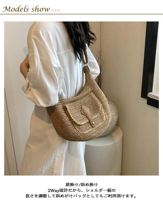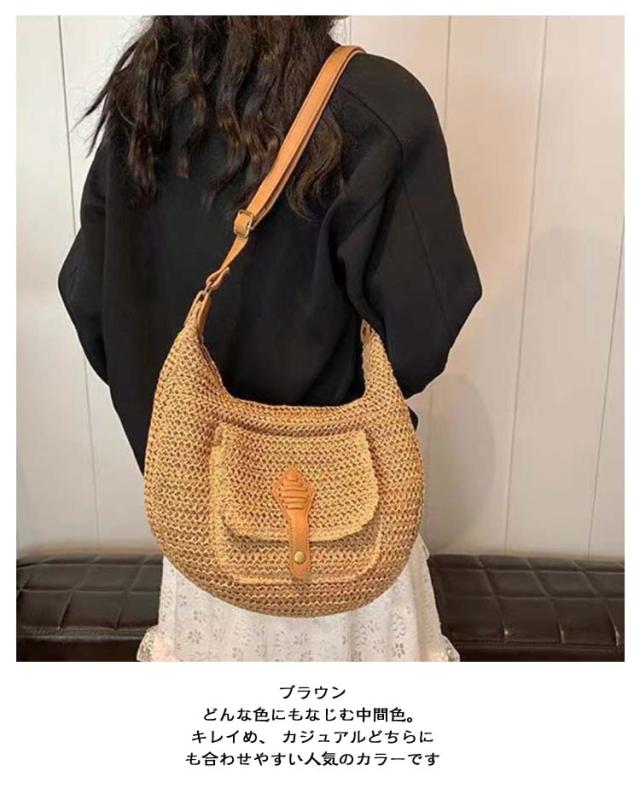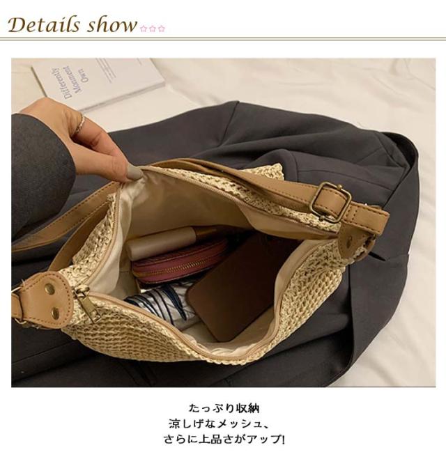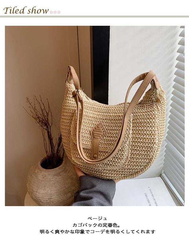 カジュアル カゴバック ベージュ バッグ ショルダー 大容量 鞄 春 かごバッグ 収納 ショルダーバッグ ブラウン 夏 シンプル かご カゴバッグ 大人かわいい ママバッグ 旅行 斜めがけ 通勤 カゴバック ビーチ バッグ ファスナー 手編み 草編みバッグ