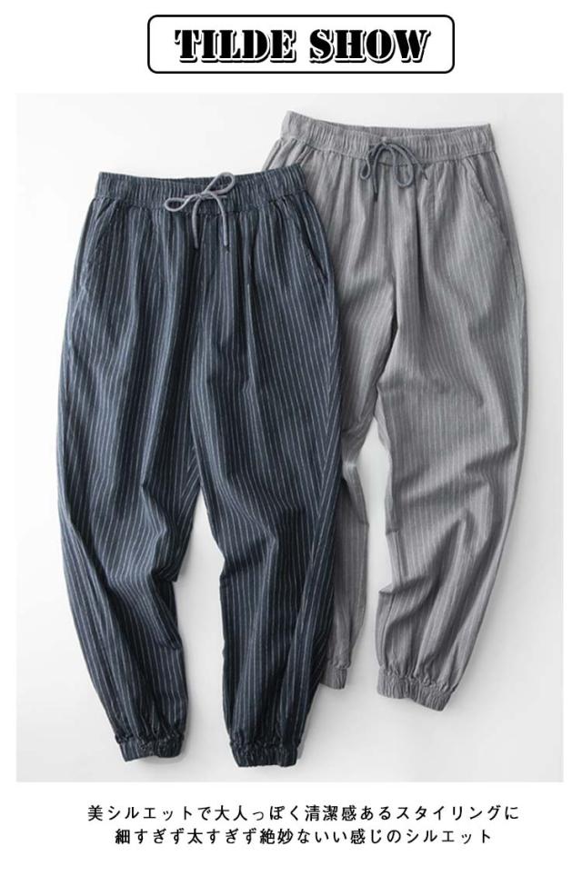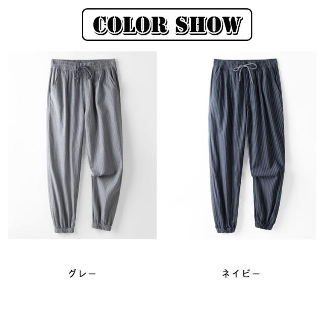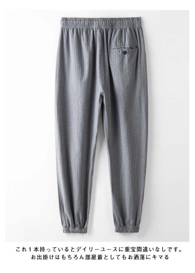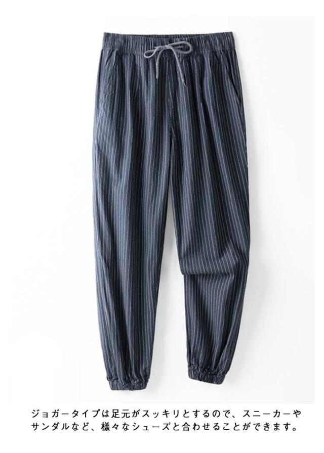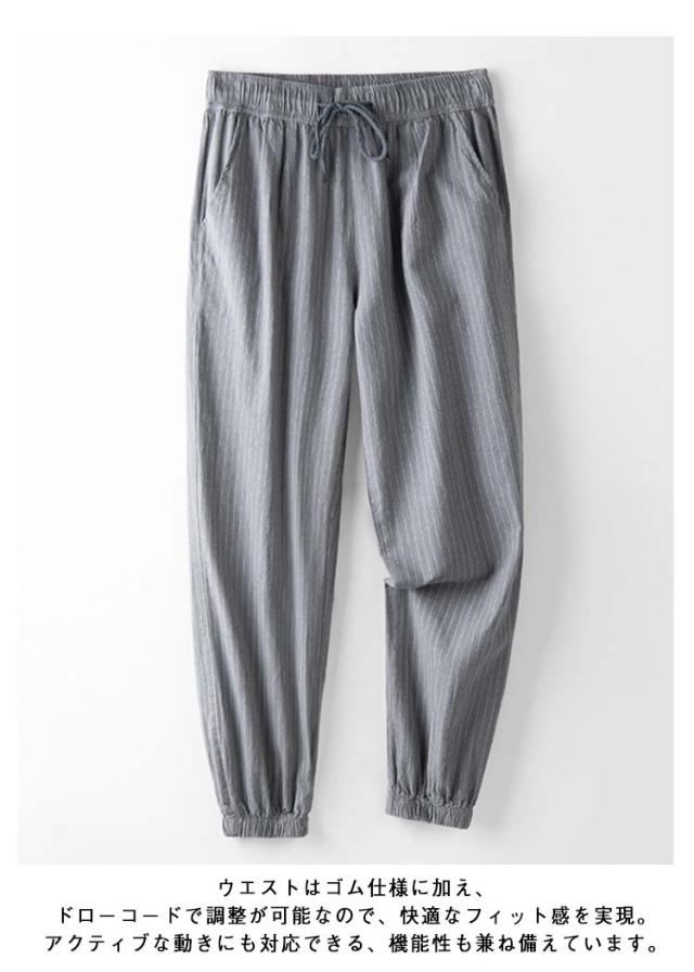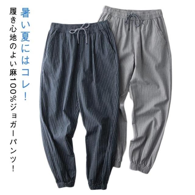 麻100% 麻パンツ パンツ シンプル ジョガーパンツ 冷感 ストライプ柄 パンツ 涼しい 麻 九分丈パンツ リネンパンツ 無地 メンズ ロングパンツ 通気性 きれいめ リネン ゴムウエスト イージーパンツ 麻100% ナチュラル 紺 ネイビー グレー ルームウェア