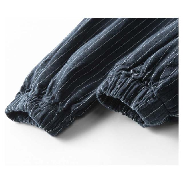 | 暑い夏にはコレ!履き心地のよい麻100%ジョガーパンツ!【ストライプ柄】 美シルエットで大人っぽく清潔感あるスタイリングに細すぎず太すぎず絶妙ないい感じのシルエット ウエストはゴム仕様に加え、ドローコードで調整が可能なので、快適なフィット感を実現。アクティブな動きにも対応できる、機能性も兼ね備えています。 ジョガータイプは足元がスッキリとするので、スニーカーやサンダルなど、様々なシューズと合わせることができます。 これ1本持っているとデイリーユースに重宝間違いなしです。お出掛けはもちろん部屋着としてもお洒落にキマる | |