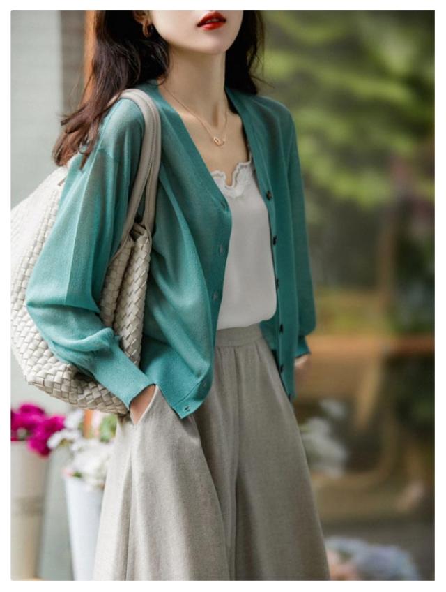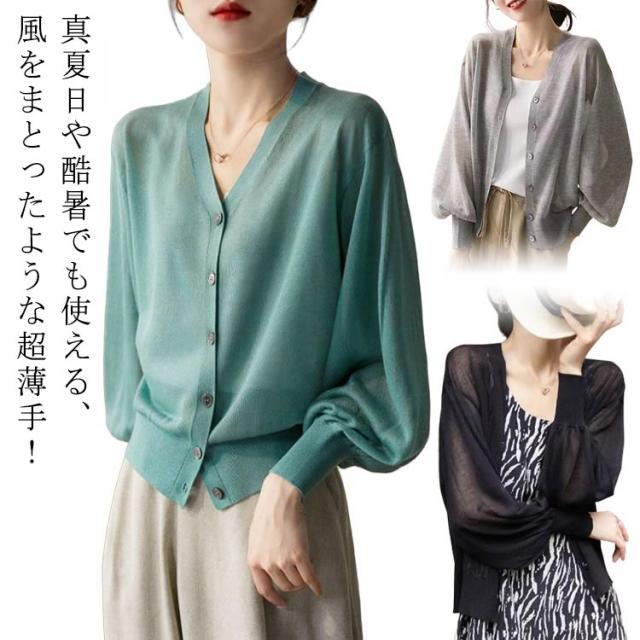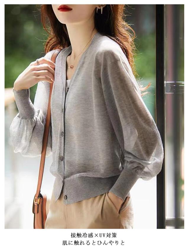 UV ニット レディース ニットカーディガン Vネック UVカット 長袖 接触冷感 透け感 カーデ レイヤード トップス 重ね着 紫外線対策 シアー 着回し 羽織 涼感 楽ちん ゆったり 夏 UV対策 紫外線対策 UVカット 洗える オフィス 冷房対策 日焼け防止