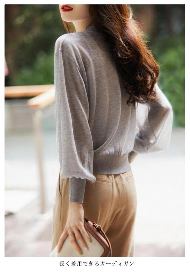 | 真夏日や酷暑でも使える、風をまとったような超薄手! 伸縮性があり、様々な体型にフィットしやすい。 さりげない光沢感と、シワになりにくい、やさしい肌触りがポイント。 長く着用できるカーディガン 接触冷感×UV対策 肌に触れるとひんやりと 冷たい接触冷感糸を使用 | |