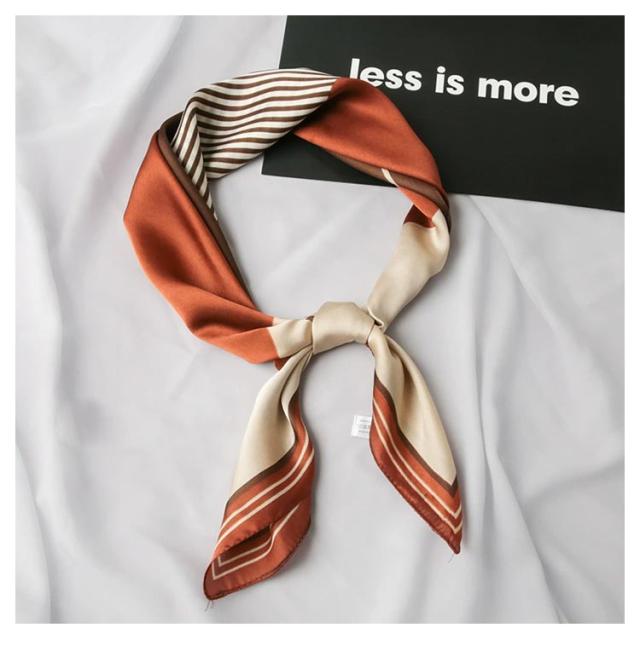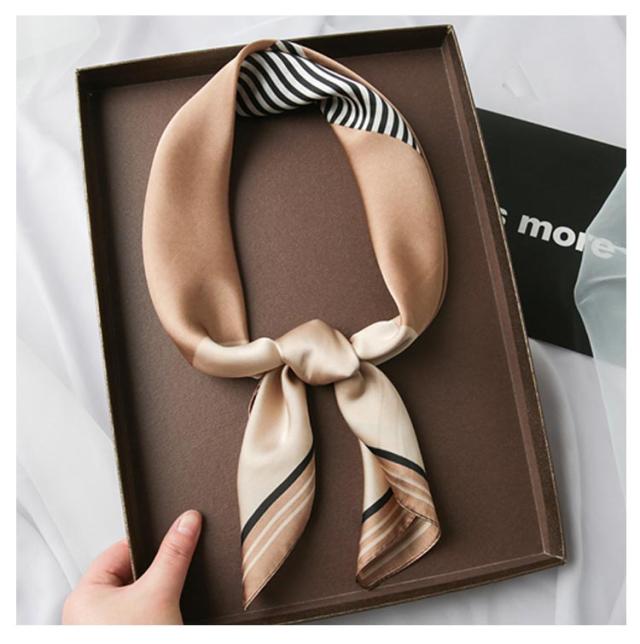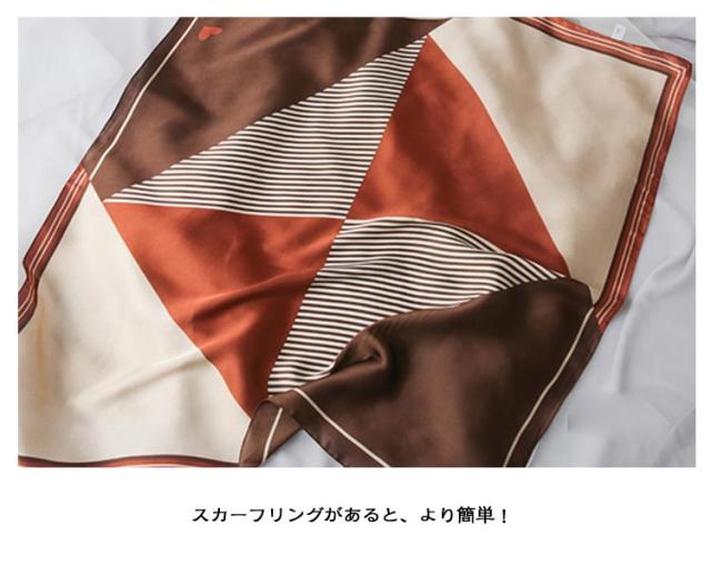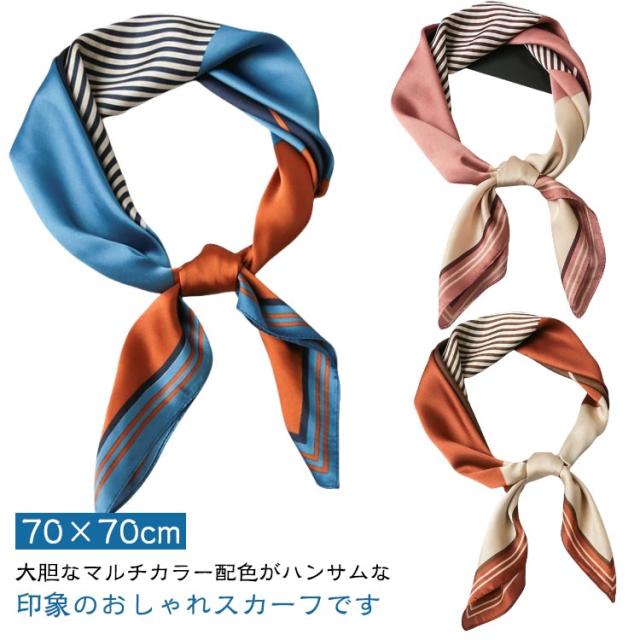 レディース 首巻き リボンスカーフ ネックスカーフ ストール 春夏秋冬 配色バンダナ シルク風スカーフ バッグスカーフ 正方形 70×70cm プリント ヘアアレンジ マルチ リボン バンダナ モチーフ