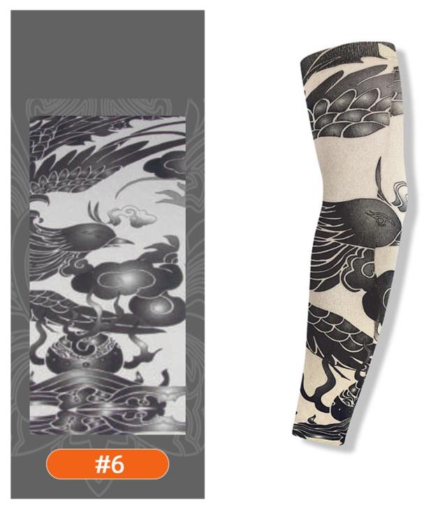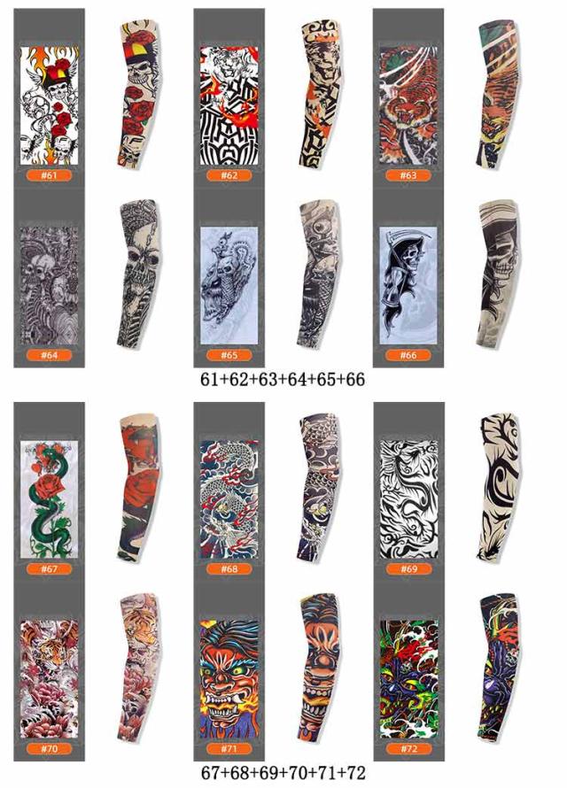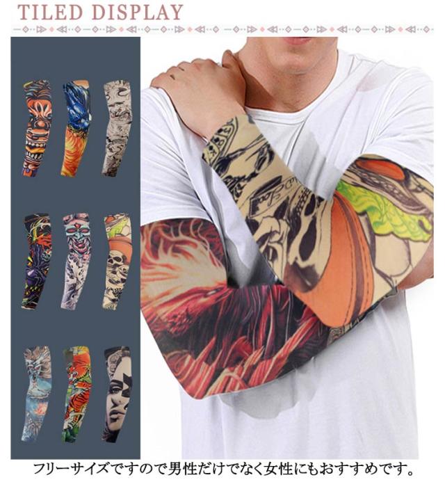 タトゥースリーブ デザイン uvカット 入れ墨 入墨 冷感 接触冷感 タトゥー 6枚入 肘サポーター 涼感 刺青 防犯用 紫外線対策 男性 アームウォーマー アームカバー 避難 仮装 コスプレ タトゥースリーブ オシャレ メンズ レディース ファッション