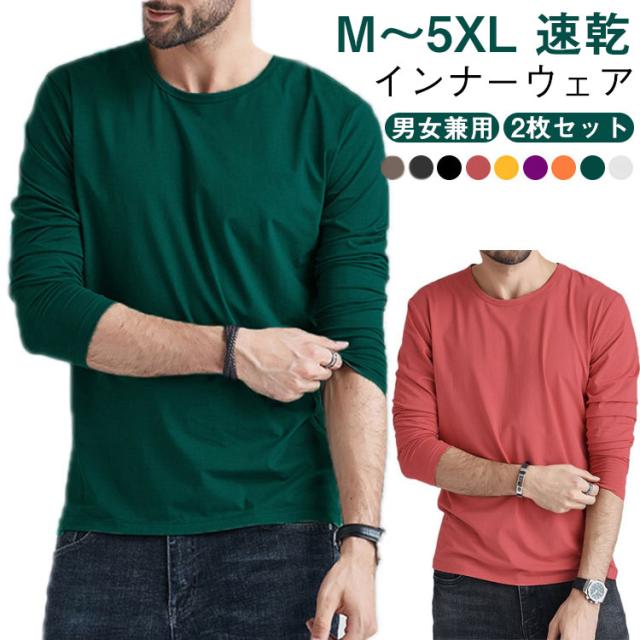 白 黒 インナーシャツ 無地 2枚組 レディース 下着 長袖 アイスシルク 大きいサイズ 接触冷感 クルーネック 男性用 アンダーシャツ インナーシャツ 肌着 紳士 コットン Tシャツ Uネック メンズ 定番 シンプル オフィス 仕事 作業服 作業着 トレーニングウェア ゴルフ