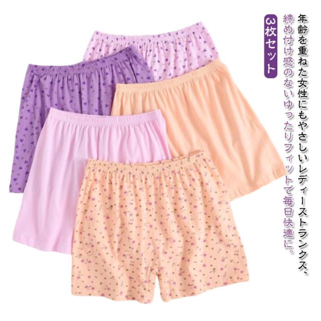 高齢者用 3枚セット 40代 下着 ショーツ ソフト 下着 トランクス インナー 大きいサイズ トランクス 70代 50代 60代 レディース ママ ゆったり 肌に優しい 女性用 柔らかい 通気性 快適 無地 花柄 お腹すっぽり 年配向け