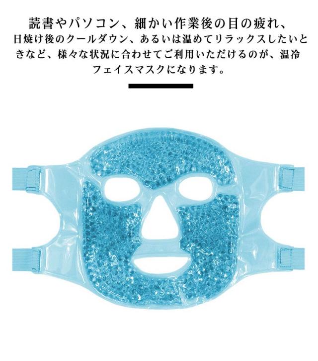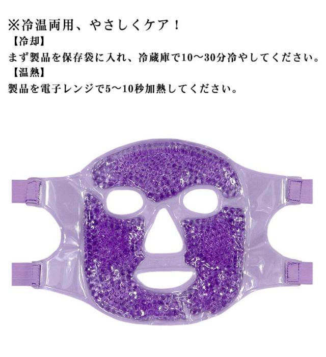 | 繰り返し使える温冷両用フェイスマスク。 通常のアイマスクとは異なり、顔全体を包み込むデザインで、目だけでなく顔全体を冷やしたり温めたりできます。 リバーシブルな表面質感で、少し冷たくしたり、暖かくしたりと、お好みの温度調整も可能です。 読書やパソコン、細かい作業後の目の疲れ、日焼け後のクールダウン、あるいは温めてリラックスしたいときなど、様々な状況に合わせてご利用いただけるのが、温冷 フェイスマスクになります。 自分用はもちろんのこと、目と口部分は空いていますので、恋人やお友達、家族と一緒にテレビをみたり、おしゃべりしたりと団らんの時間も冷感 フェイスマスクをしながらお楽しみいただくことができます。 夏でも冬でも、オールシーズンご使用いただけるので、複数あっても便利です。 ※冷温両用、やさしくケア! 【冷却】 まず製品を保存袋に入れ、冷蔵庫で10〜30分冷やしてください。 【温熱】 製品を電子レンジで5〜10秒加熱してください。 | |