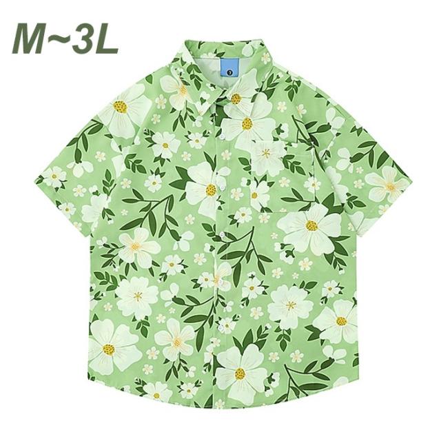 アロハシャツ ハイビスカス 総柄 グリーン 男女兼用 メンズ レディース カジュアル 半袖 柄シャツ 夏 海 開襟シャツ ゆったり 涼しい おしゃれ 大きいサイズ ハワイアン 半袖シャツ 夏 夏服 ビーチ 海 涼しい 冷感旅行 リゾート 沖縄 mo003d7d7z7