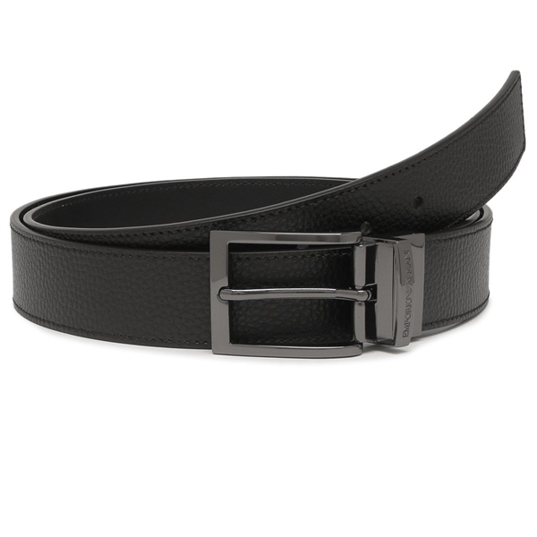 EMPORIO ARMANI(エンポリオアルマーニ)のベルトが入荷しました☆表裏で異なる表情を楽しめるリバーシブル仕様です。回転式のバックルを回すことで、装いや気分に合わせて使い分けできます。メタルバックルに刻印されたブランドロゴがデザインのポイント。洗練された雰囲気をまとった、贈り物にも喜ばれる一品です。