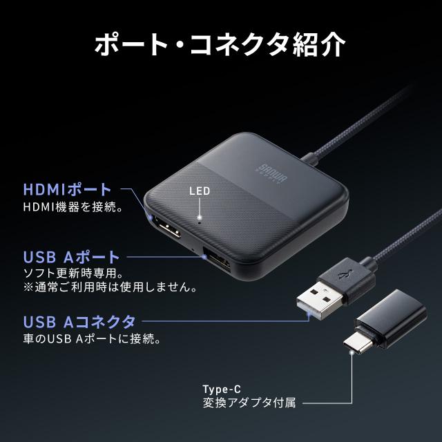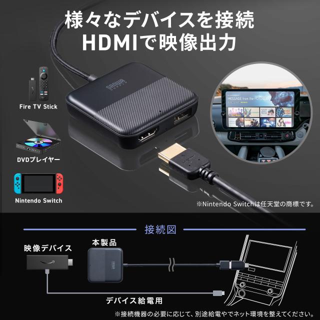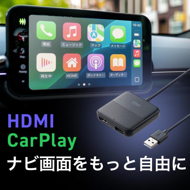 マルチメディアアダプター Car Playアダプター HDMI入力端子 TVスティック iPhone スマホ 地デジチューナー DVDプレーヤー対応 youtube再生 有線カープレイ搭載車用[200-CAR120]