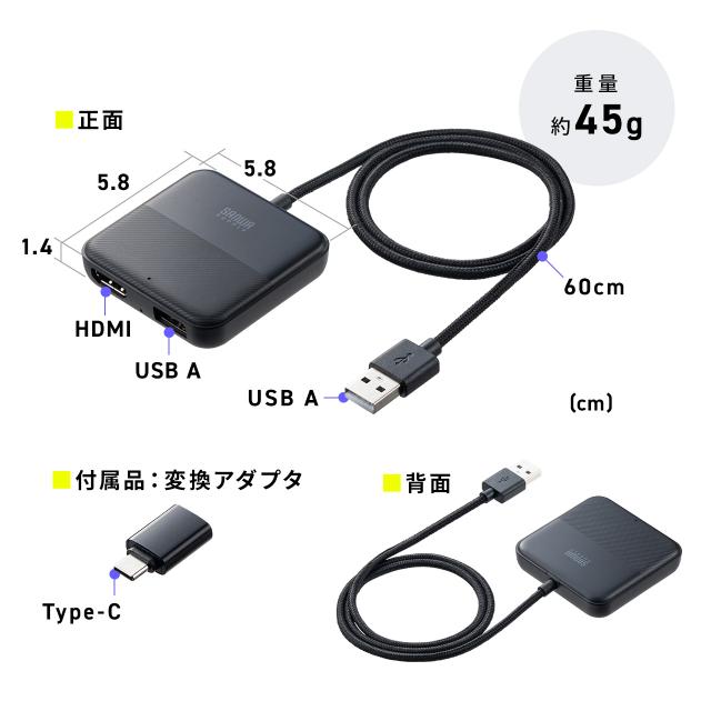 ■コネクタ:USB Aメス×1、HDMIタイプA(19pin) メス×1