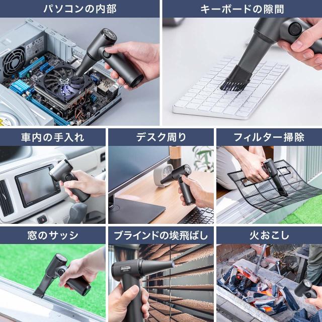 ●キーボードの隙間や精密機器、エアコン、車内、窓のサッシ、サーキュレーターなど幅広い場所で使用できます。