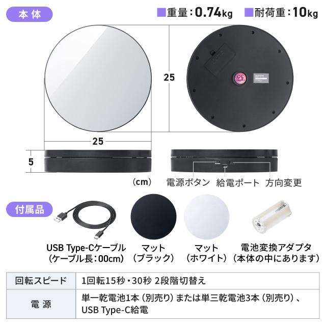 ⇒ご購入の前にご確認下さい電動360度回転する回転台。USB電源/電池駆動に対応。左右回転の切り替えや2段階速度調整に加え、25cmのサイズと耐荷重10kgで幅広い撮影に対応したターンテーブル。Mサイズ。【WEB限定商品】
