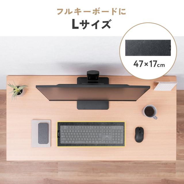 デスクマット 静音マット キーボードマット フェルトマット 幅約40cm テンキー付キーボード 静音 メカニカルキーボード すべり止め グレー[200-KBMAT1DGY-M]