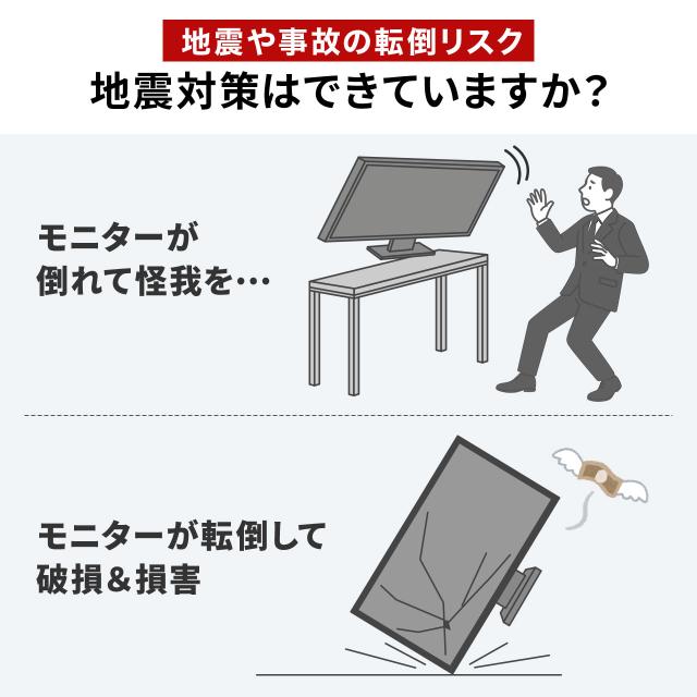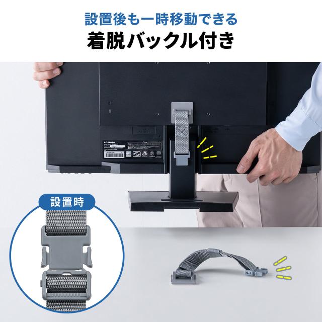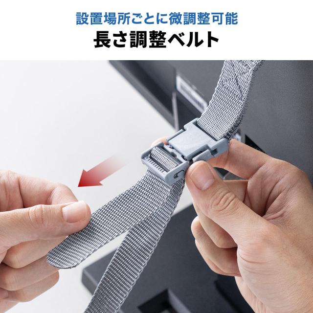 パソコンディスプレイ転倒防止ベルト モニター落下防止 モニターストッパー ワンタッチ着脱 長さ調節可能 震度6強 耐震試験済み[200-QL026]