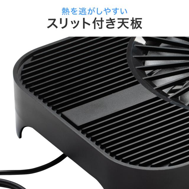 ルーター冷却クーラー 静音 小型 USBファン オンオフスイッチ ミニPC HDD 冷却スタンド 13.5cmファン 長時間稼働 冷却台 ブラック[400-CLN038]