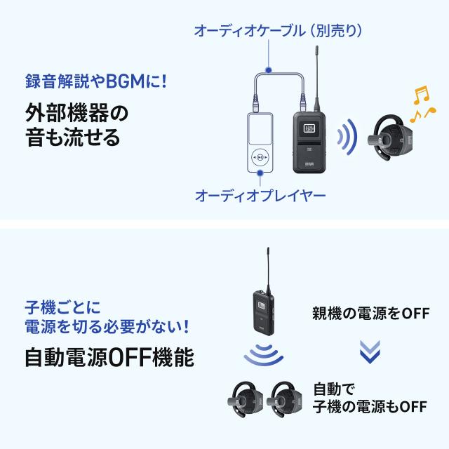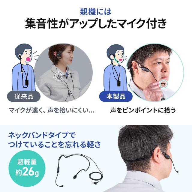 ●親機(400-HSGS004T)のみ発言ができる単方向通信なので、子機(400-HSGS004R)による誤操作による中断の心配がございません。